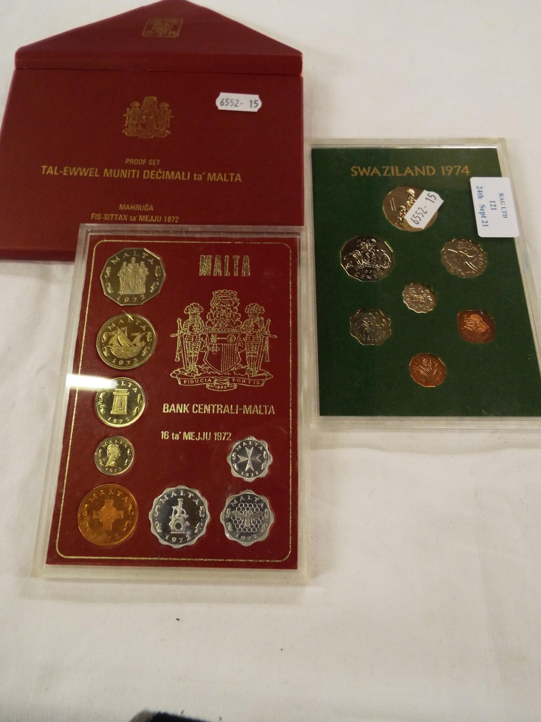 A 1972 Malta proof set coins and a Swaziland 1974 proof set coins