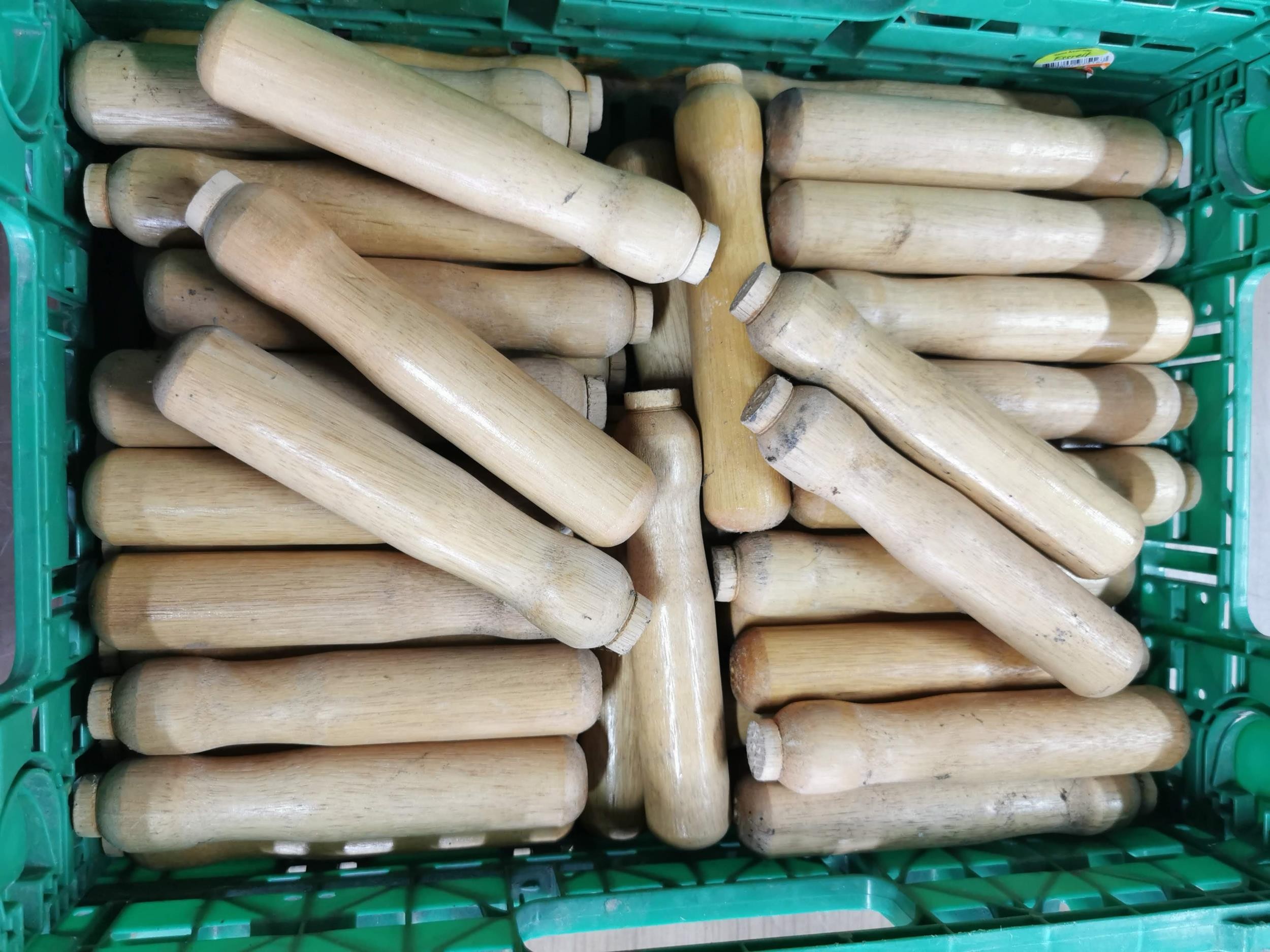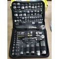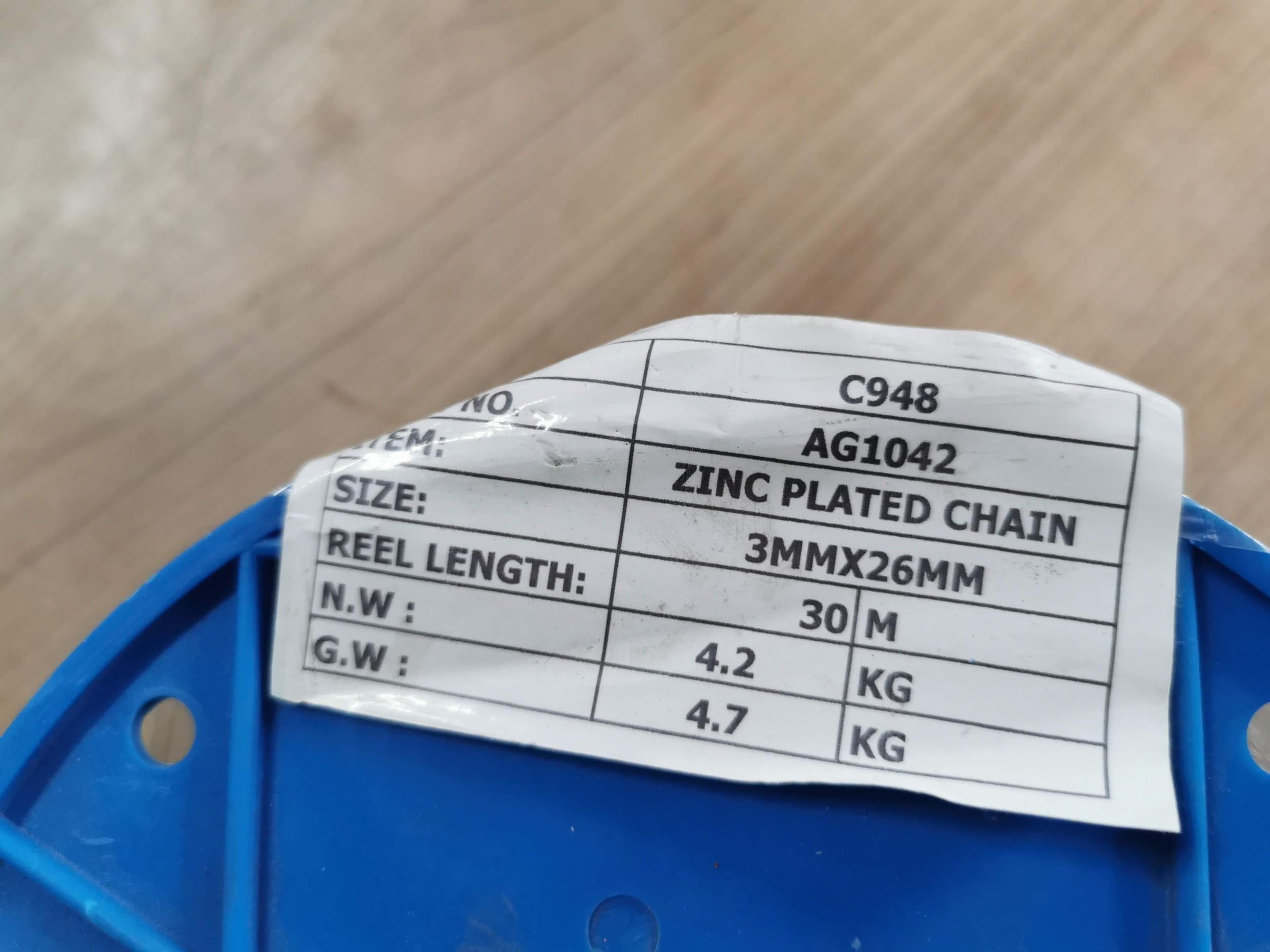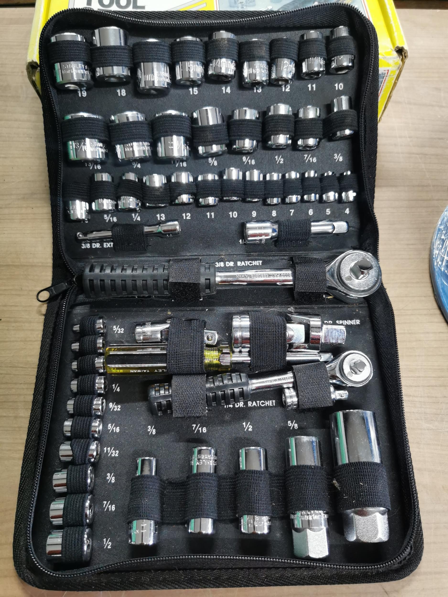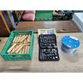 Tray of tool handles a great 50 piece Stanley tool set new in box and a new reel of zinc plated chain 30meter 3mm x 26mm.