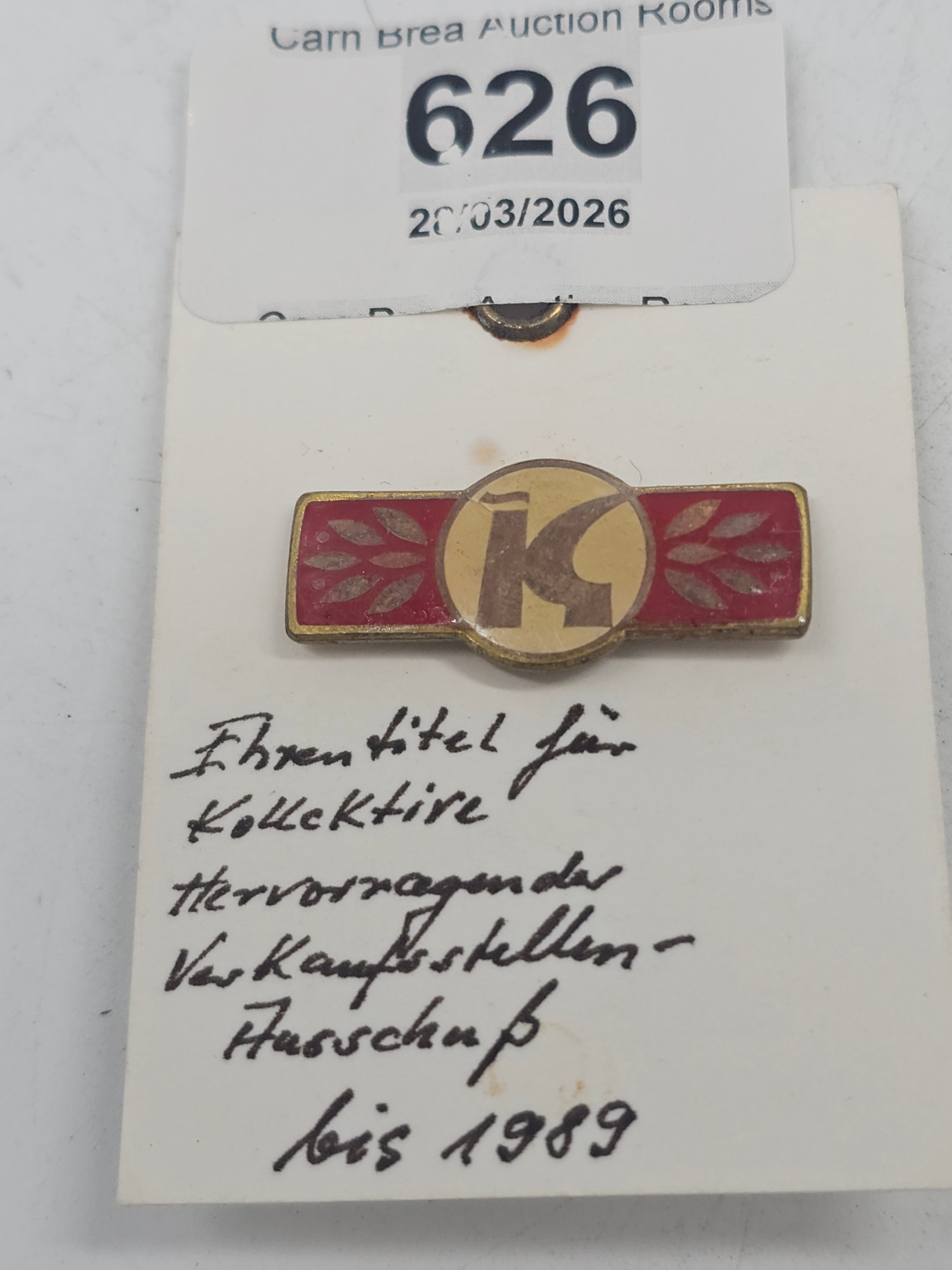Vintage East German enamel pin badge awarded by the Association of Consumer Cooperatives ( VdK )