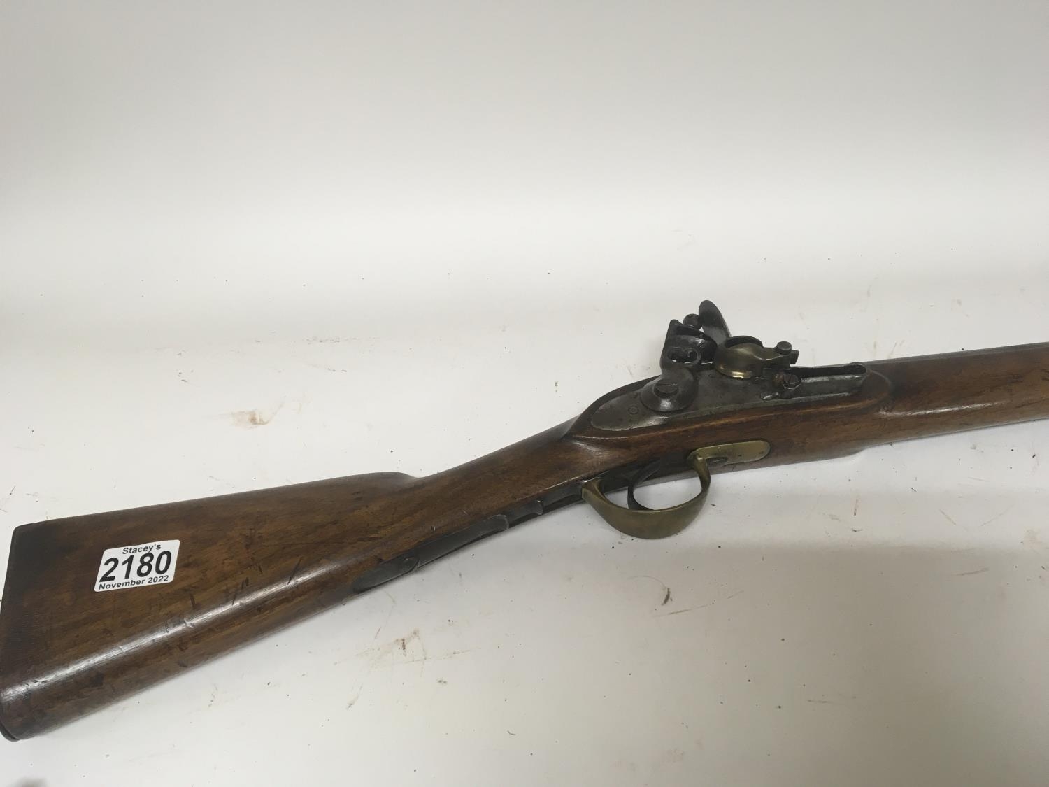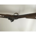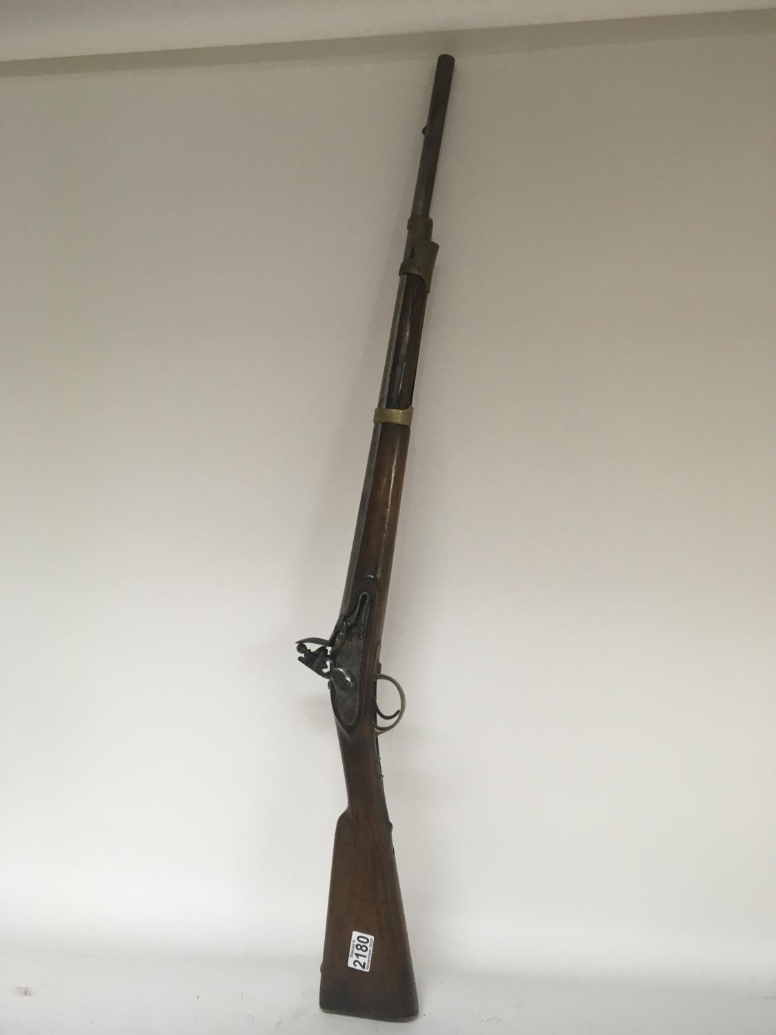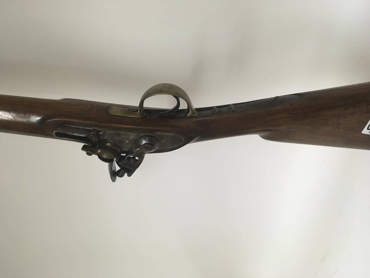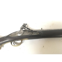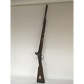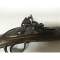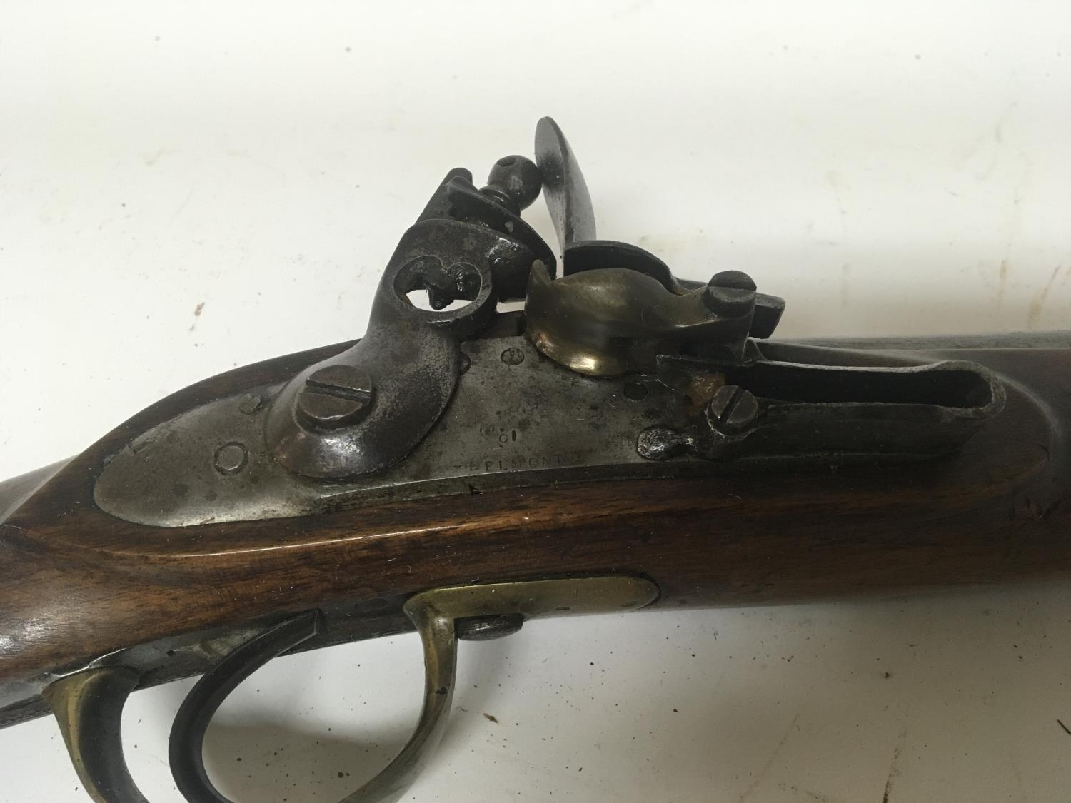 An unusual early 19th century flintlock musket rifle the steel action engraved Belmqnt three quarter length stock with brass fittings and barrel bands length 113cm