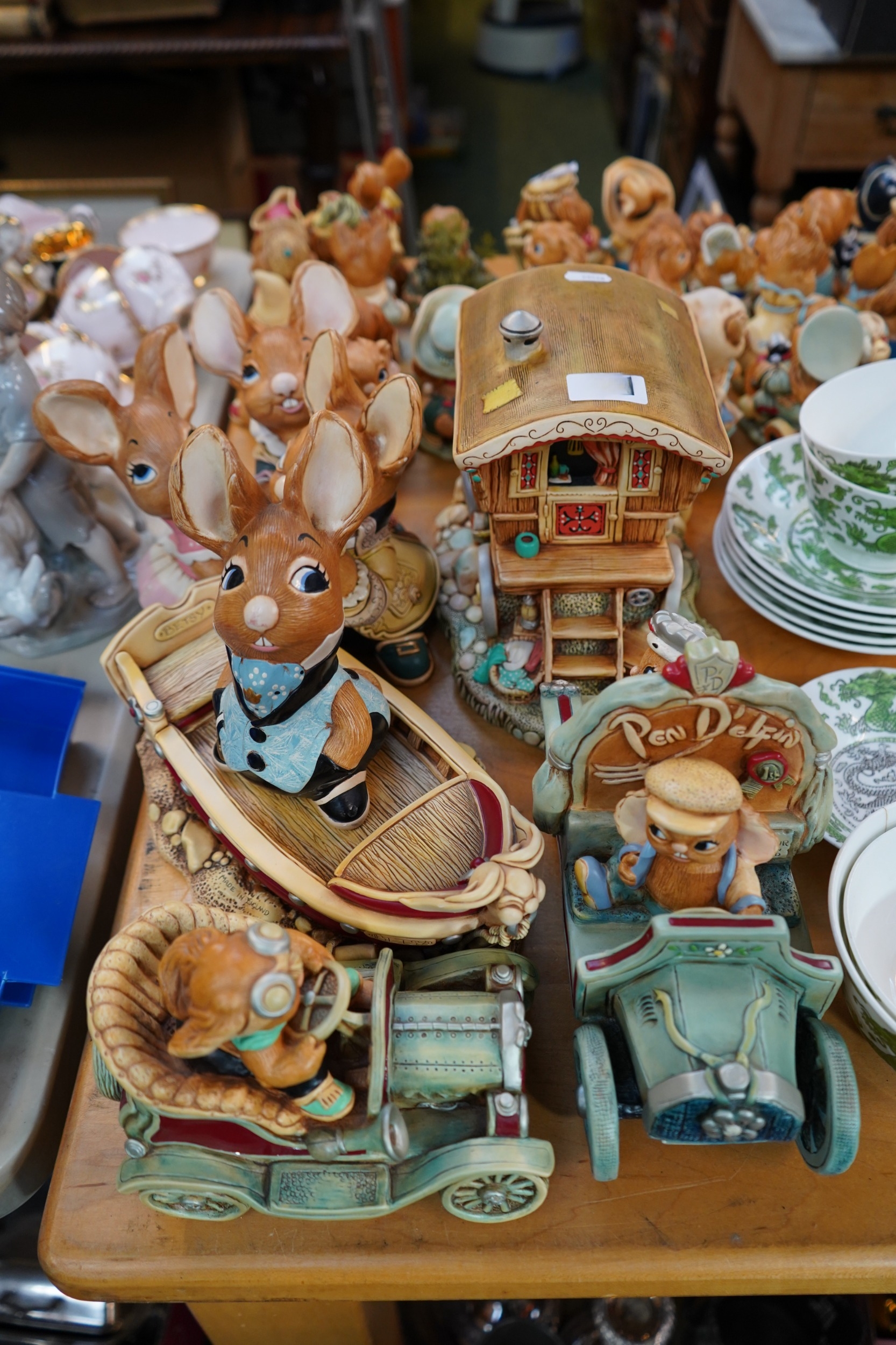 Collection of Pendelfin Blow up figures, Vehicles and a Caravan.