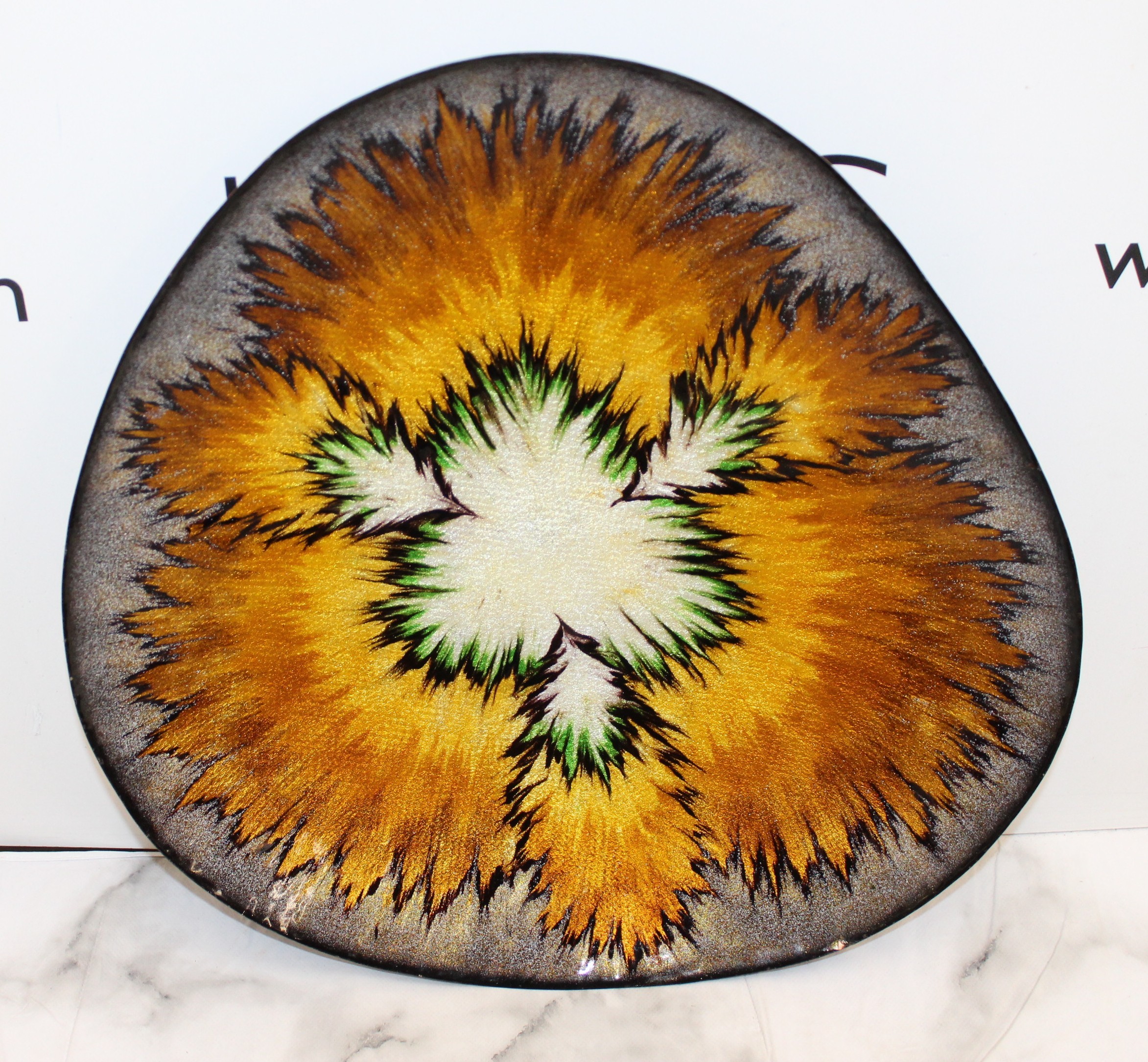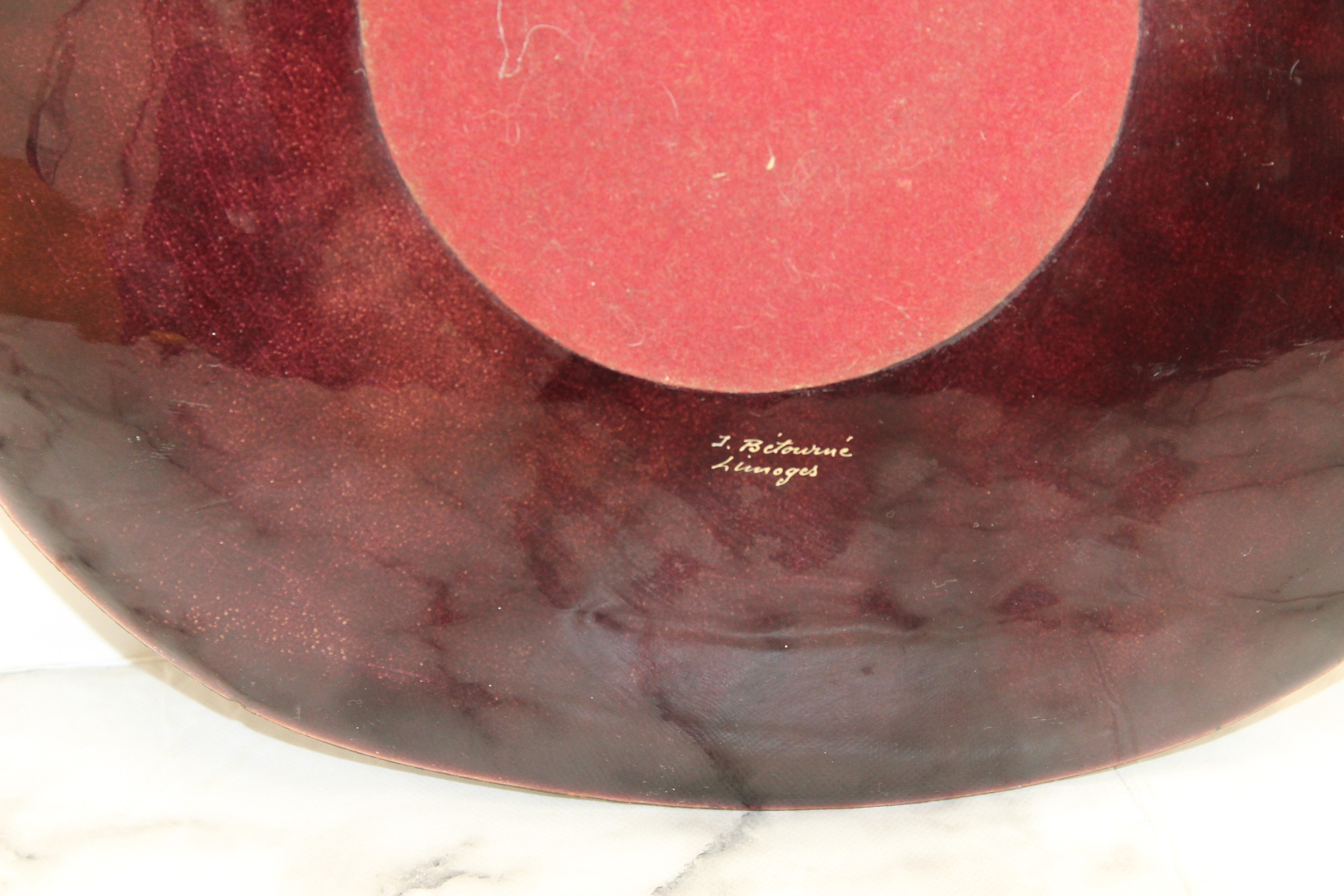 J. Betourne Limoges Mid Century Decorative Ceramic Enamel Dish 36.5cm x 37cm Chip As Shown In Pictures
