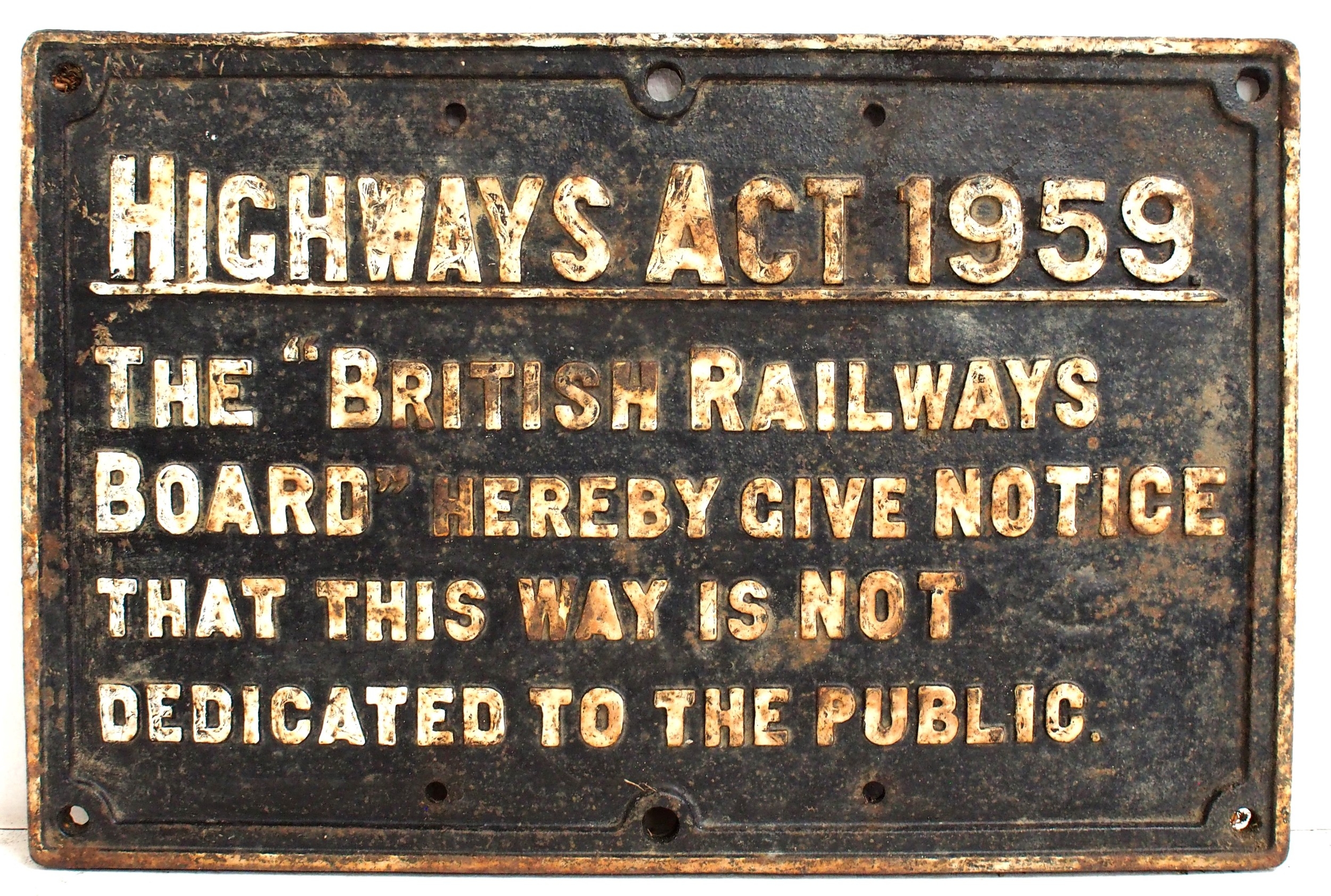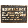 British Railways Board C/I "Highways Act 1959" notice, 24½"x 16", GWR pattern, original condition. (PDESK) (Dispatch by Mailboxes/Collect from Banbury Depot)