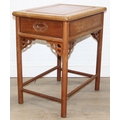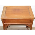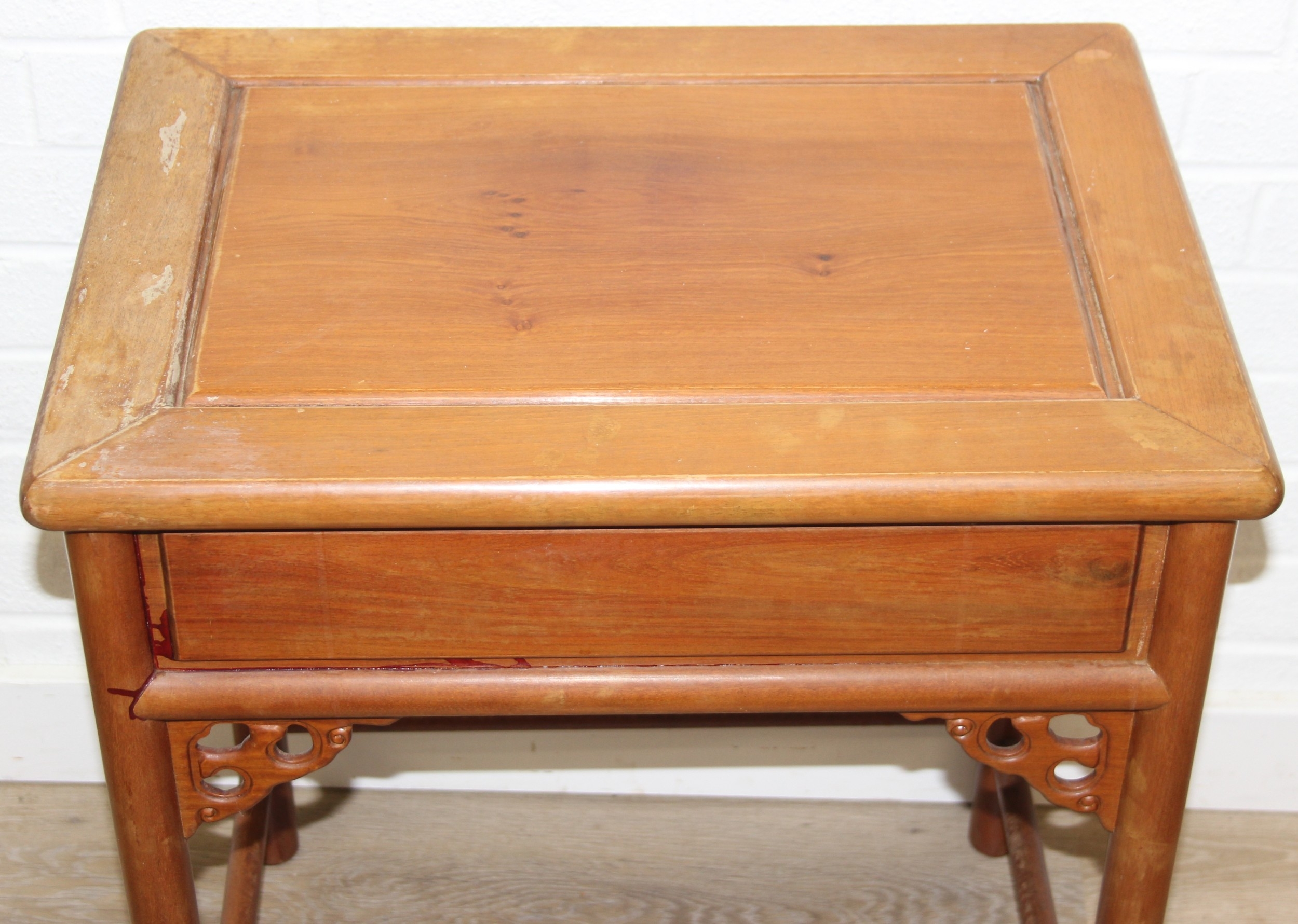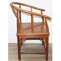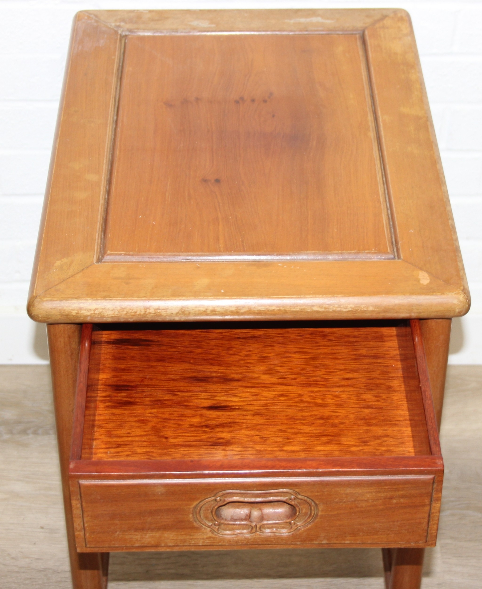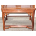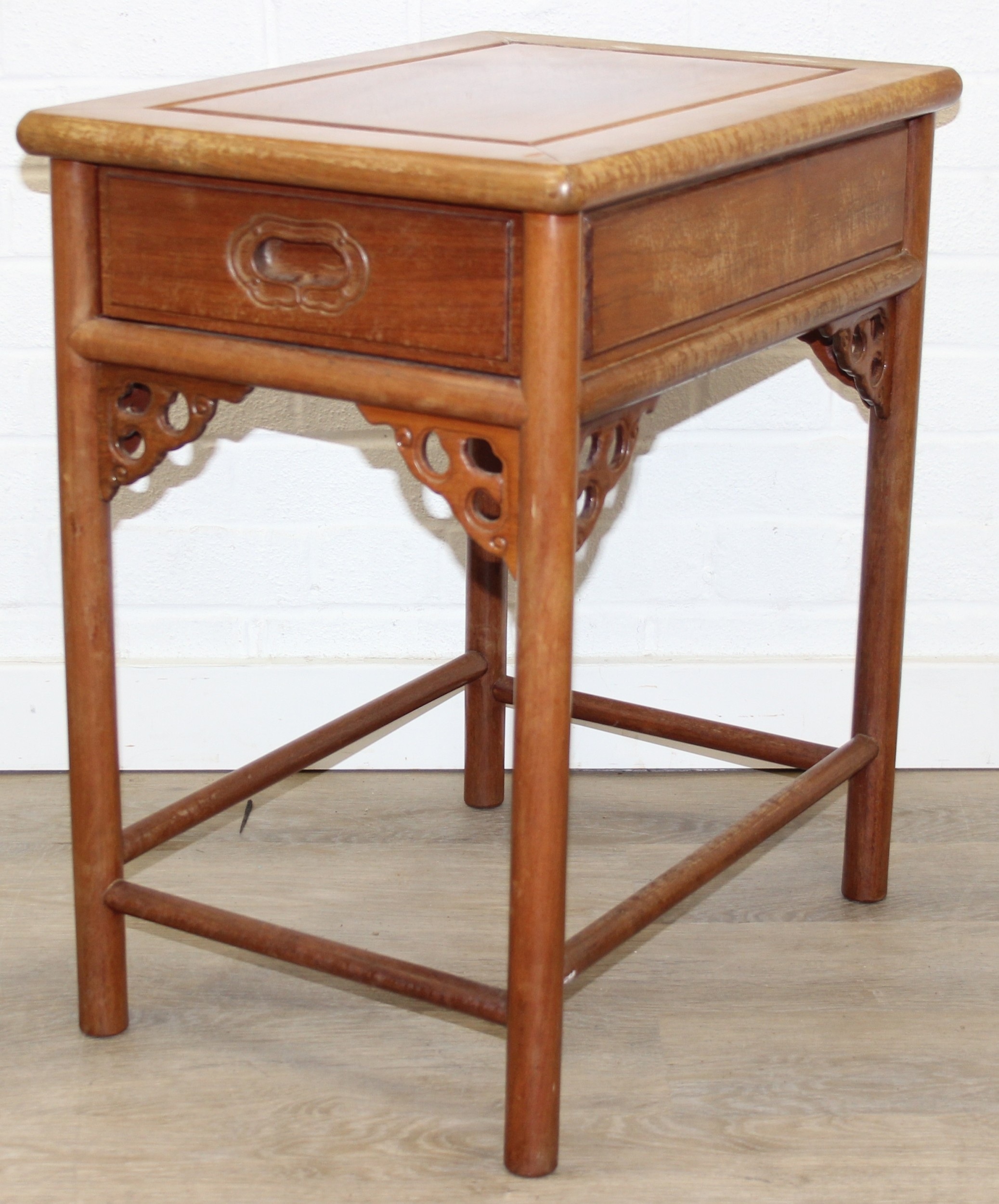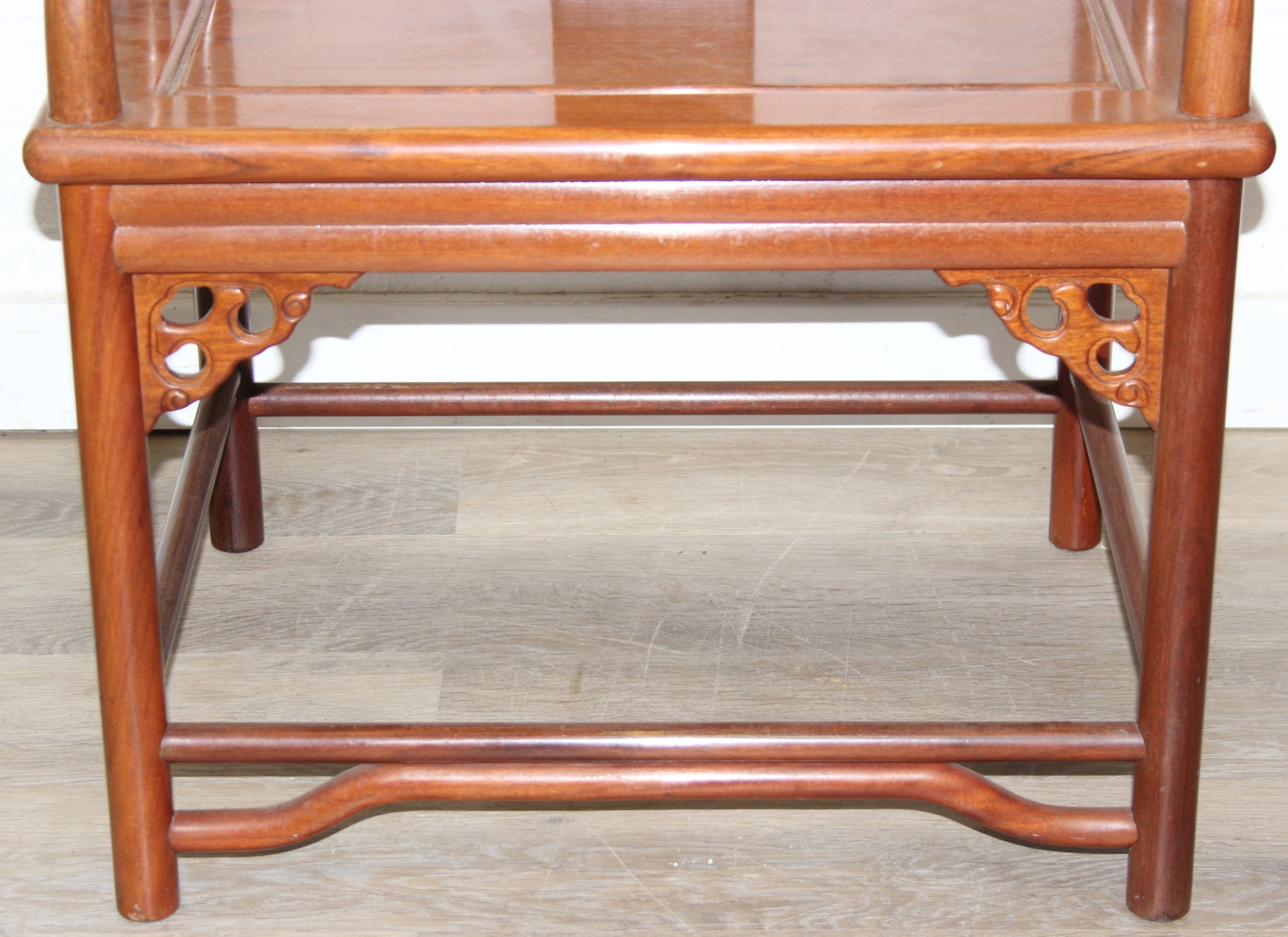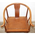 A pair of Chinese hardwood chairs with horseshoe back and a similar matching hardwood table, 20th century, the table 41cm x 56cm x 52cm [3 items]