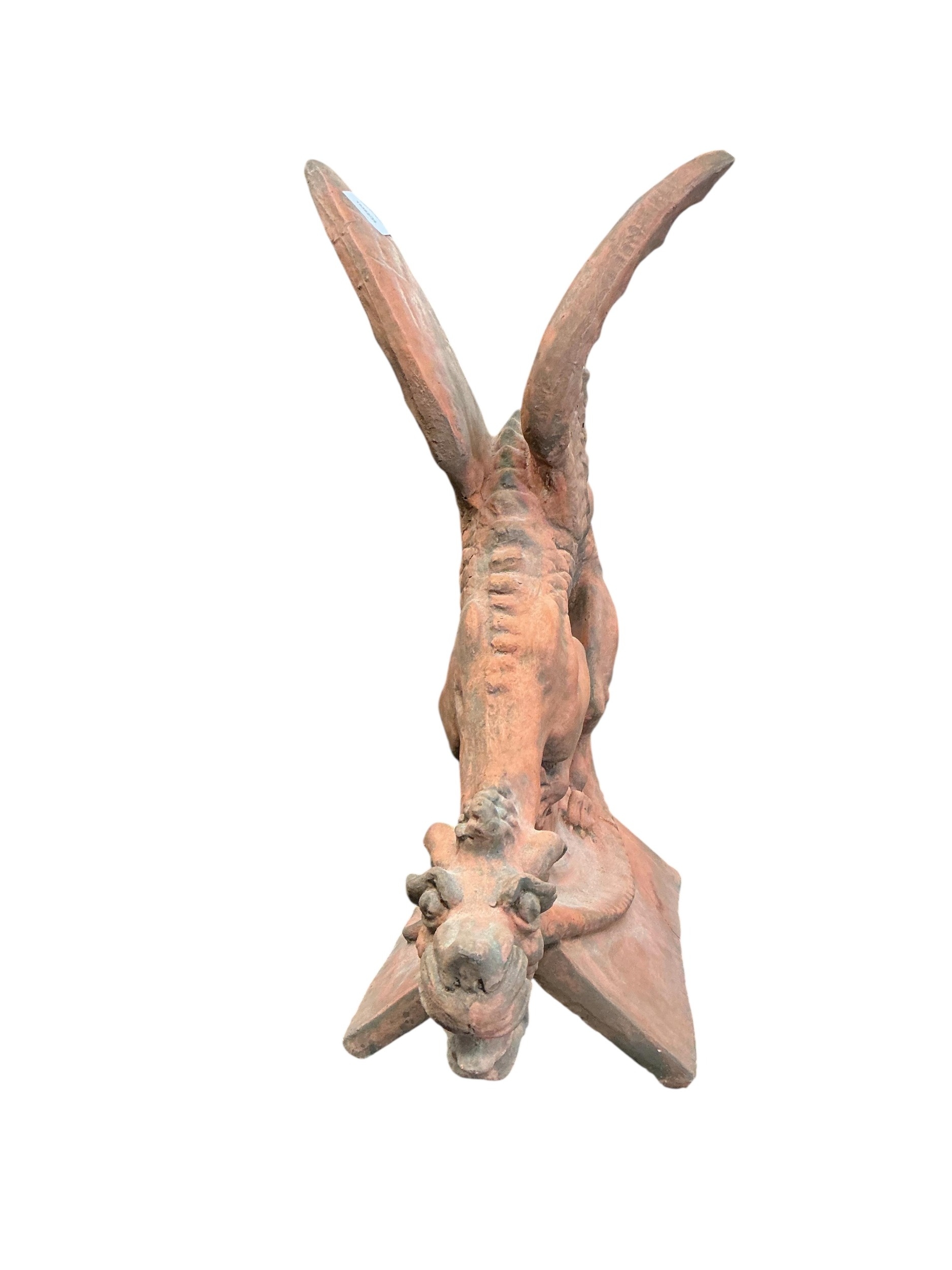 A terracotta gargoyle ridge tile, height 66cm
