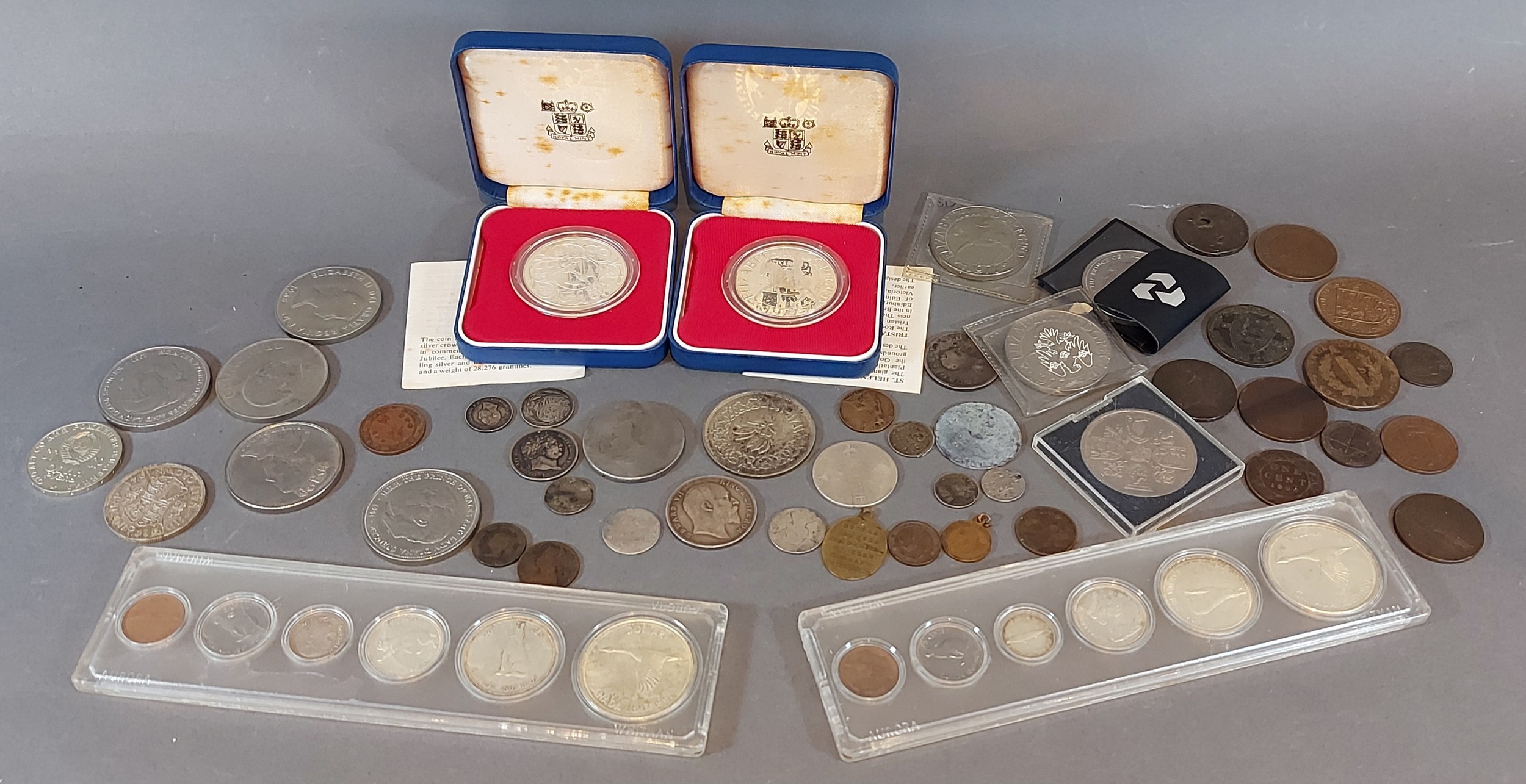 Two silver proof Crowns together with a coin collection both British and Foreign