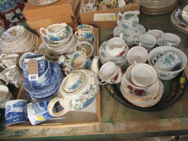 TWO TRAYS OF MASONS AND SPODE AND OTHER CERAMICS