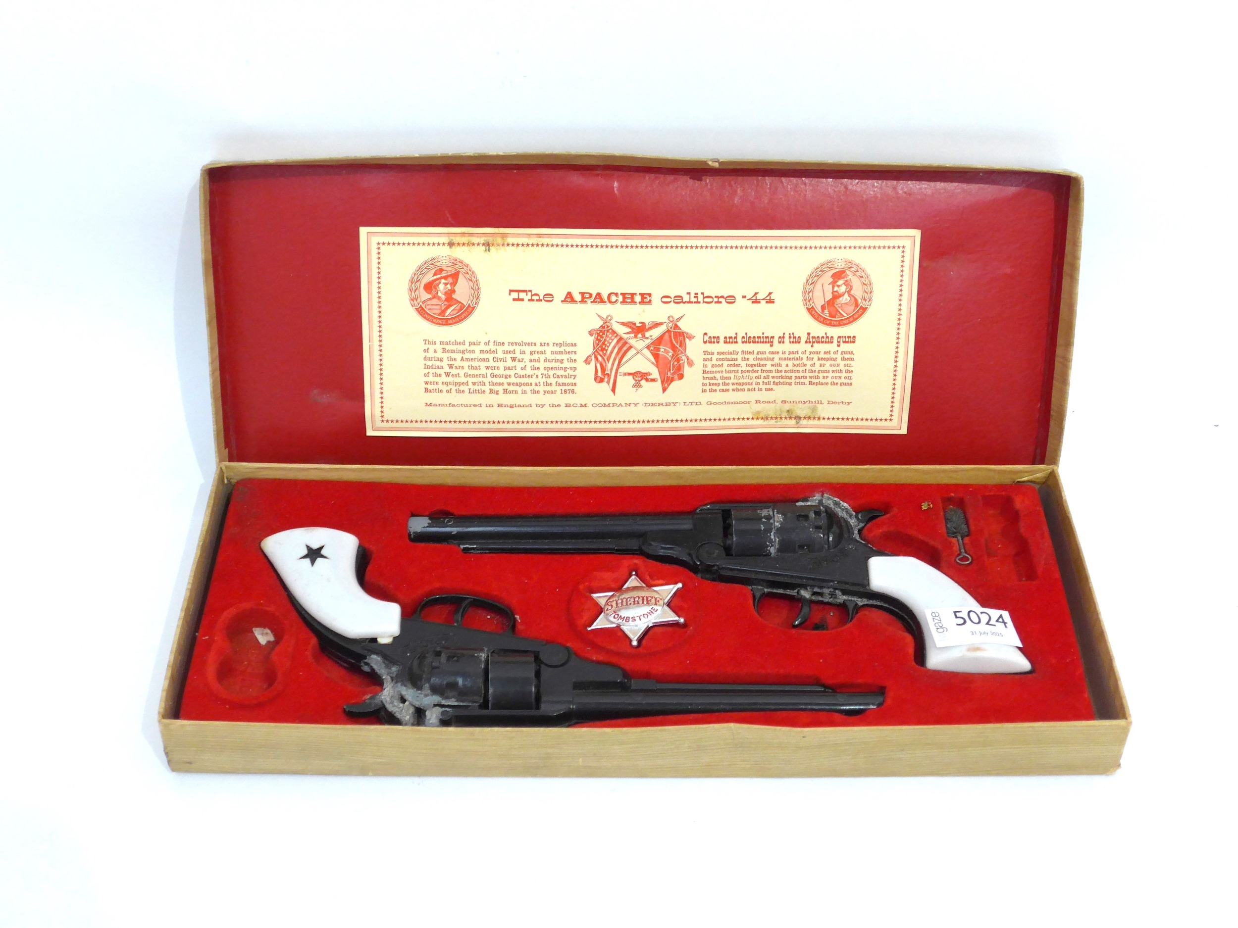 Part boxed Outlaw Guns Apache calibre .44 two gun set, incomplete