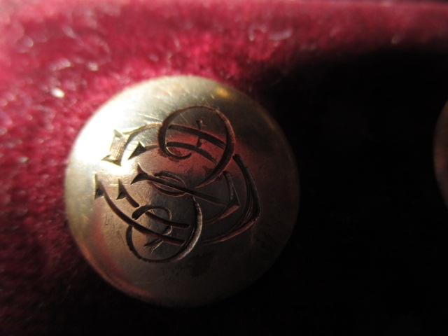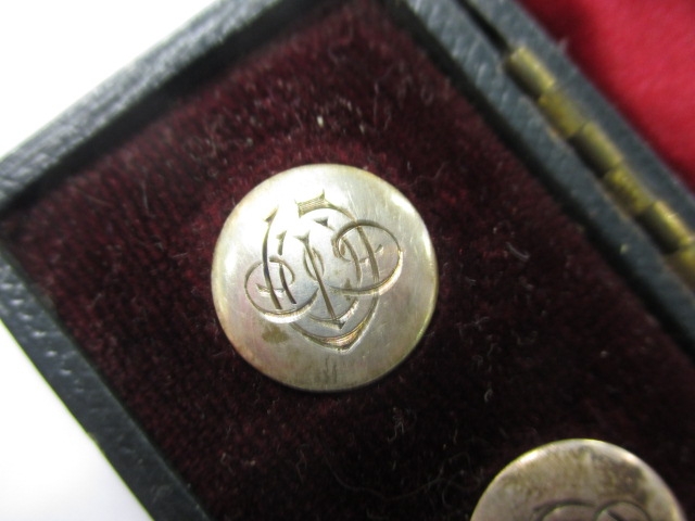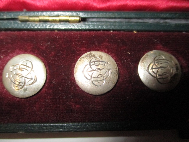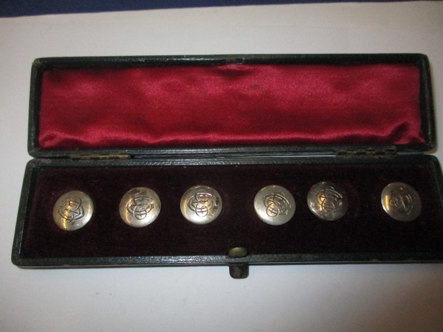 A boxed set of 6 sterling silver buttons, Chester hallmarks, all in used condition