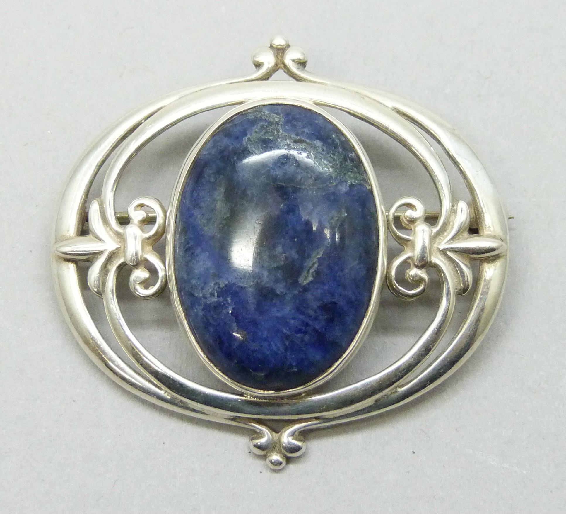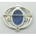 Malcolm Gray, a 1990s Scottish silver brooch set with a blue stone, hallmarked Edinburgh, 1990, 4cm