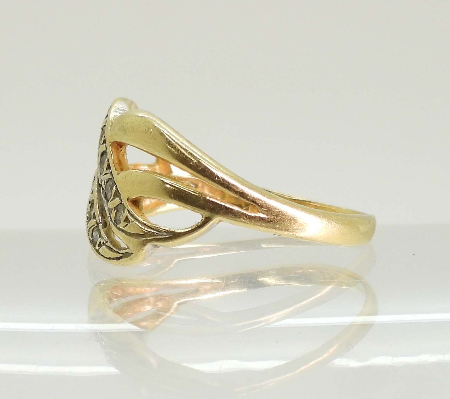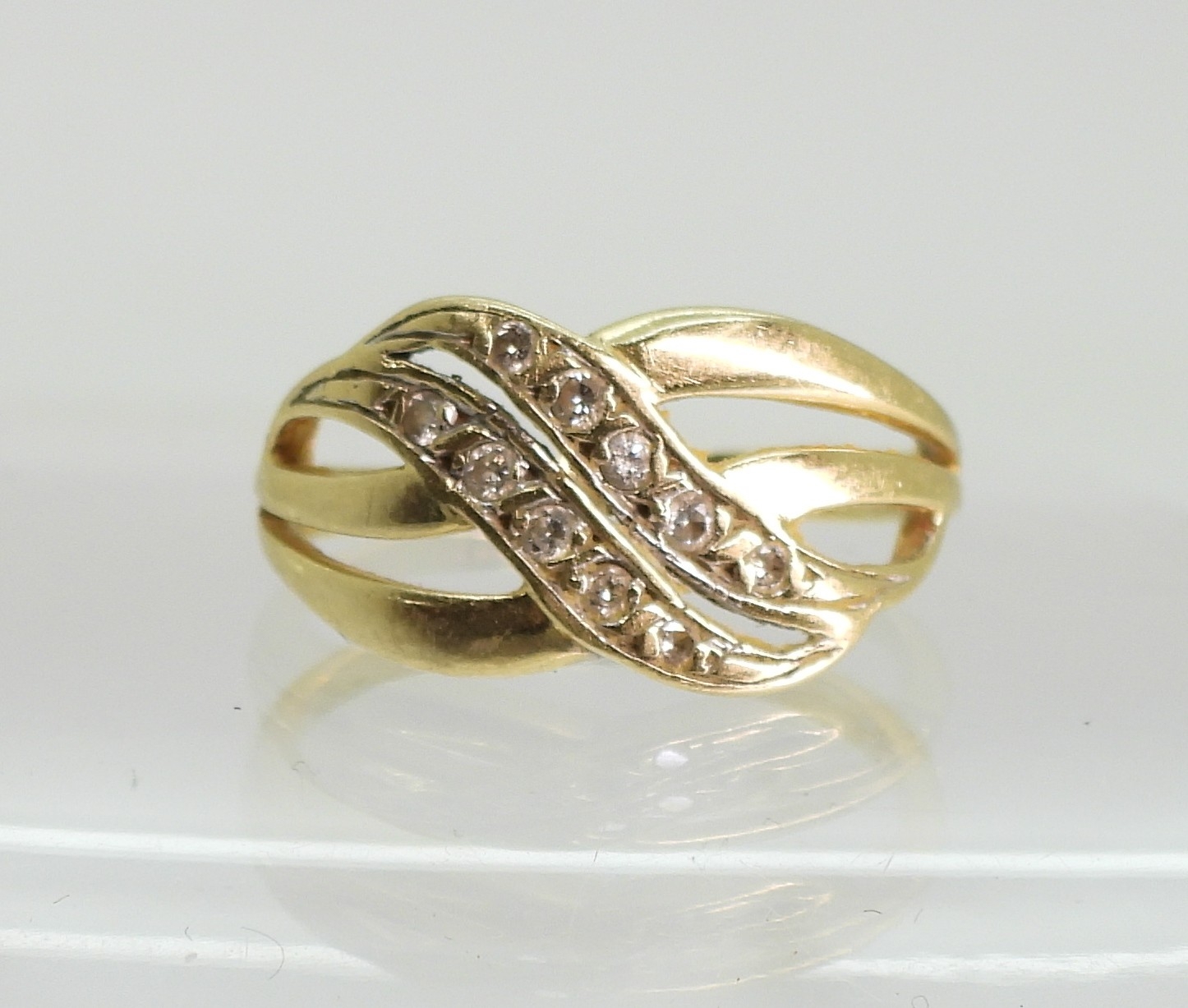 A 14k gold diamond accent ring, size N, weight 2.6gms
