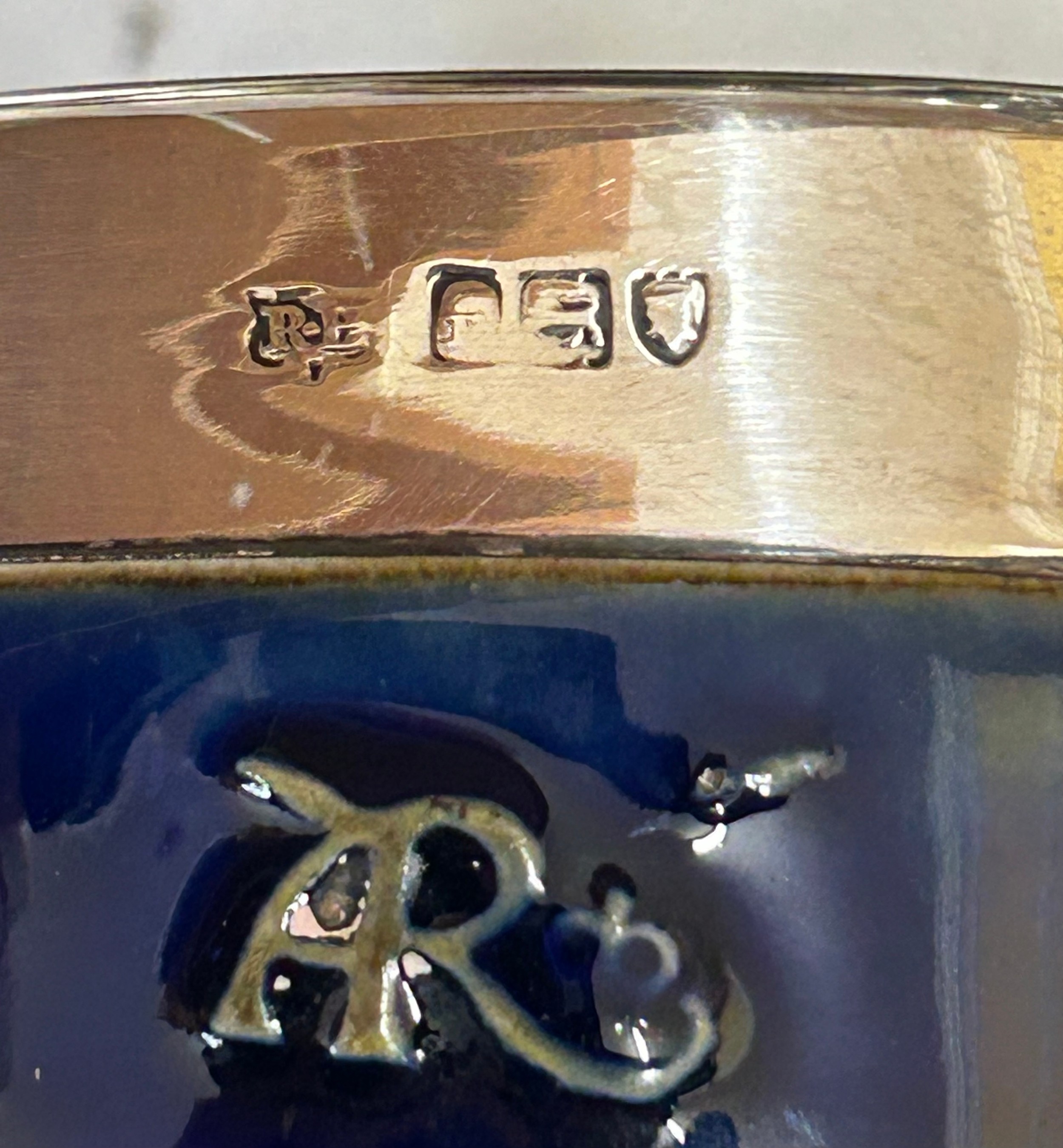 Crackle to glaze otherwise good condition. No chips or cracks. No damage to silver to rim.