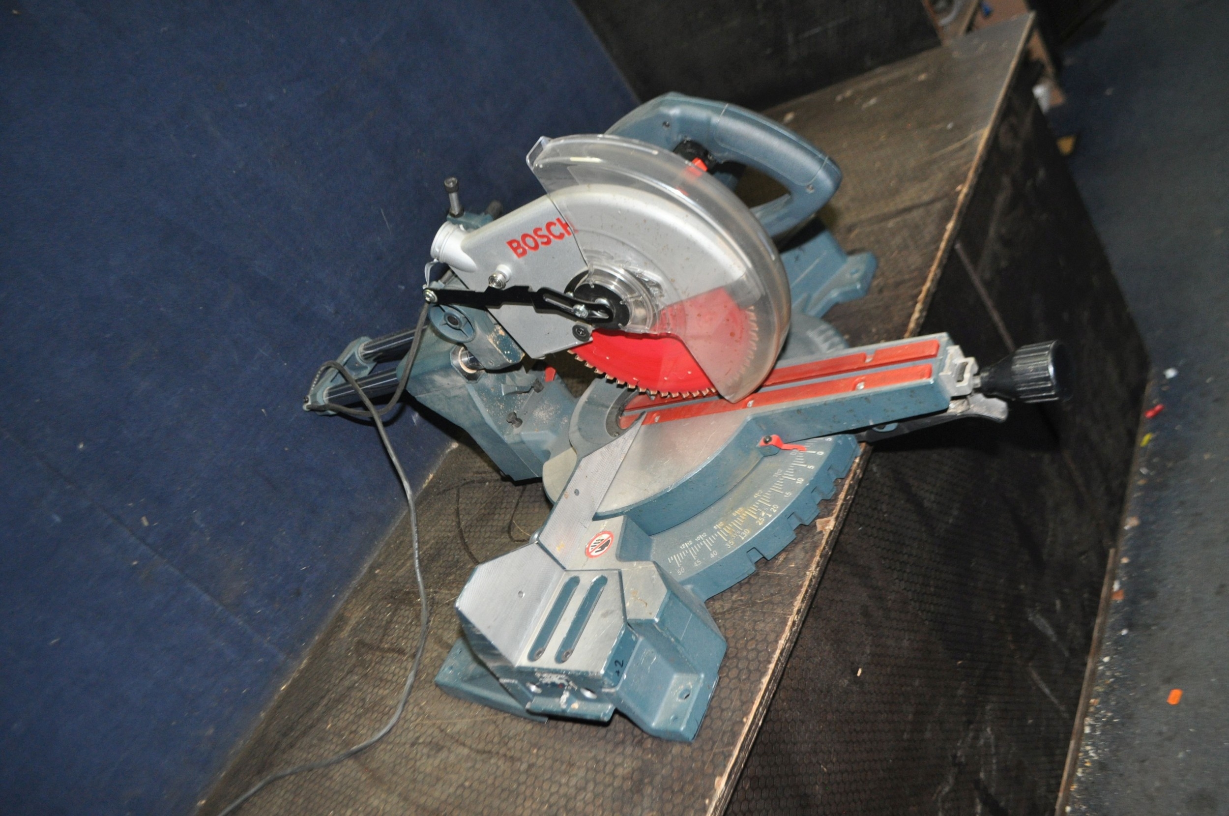 A BOSCH PROFESSIONAL GCM10S SLIDING COMPOUND MITRE SAW with a 254mm blade (PAT pass and working but smells brushy)