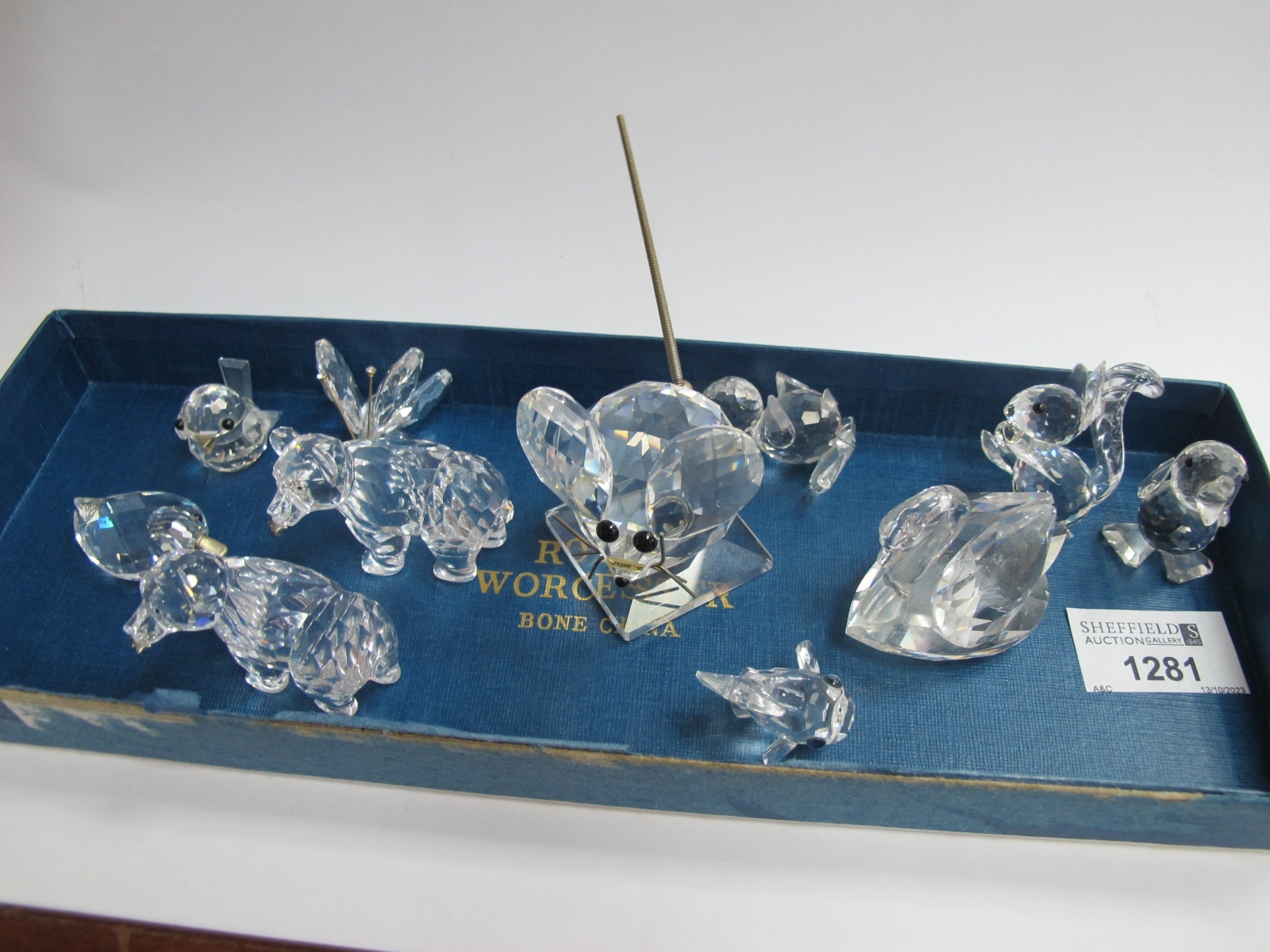 Swarovski Crystal Glass Mouse with Metal Tail, swan, two bears, seven others, all stamped.
