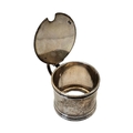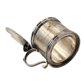 Hallmarked Chester, 1920, plain cylindrical form with reed upper and lower bands. stylised scallop shell thumb grip finial, (lacking liner).