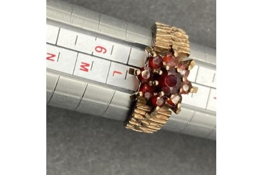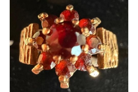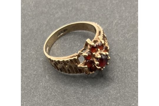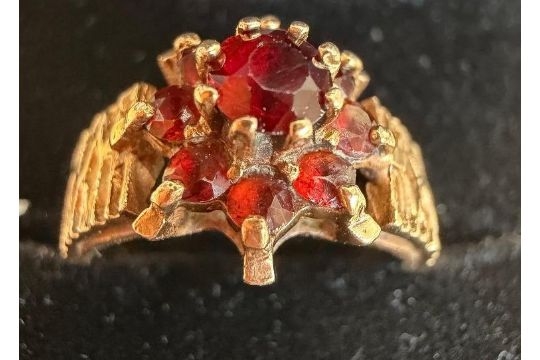Jewellery 9ct GOLD ring with red stones possibly garnets 2.7g PLEASE MAKE SURE YOU READ TERMS AND CONDITIONS REGARDS PAYMENT OPTIONS, CARD NOT PRESENT TRANSACTIONS NOT ACCEPTED ON GOLD JEWELLERY OR WATCHES.