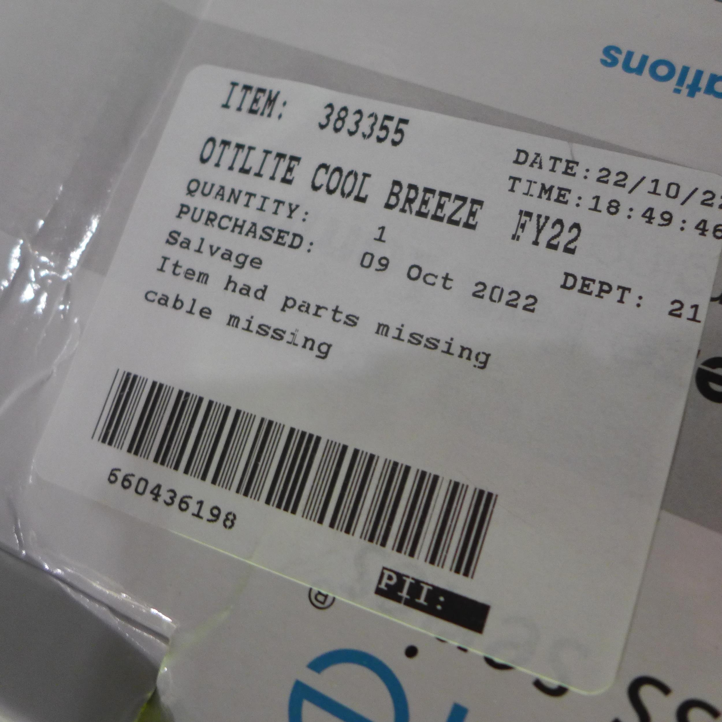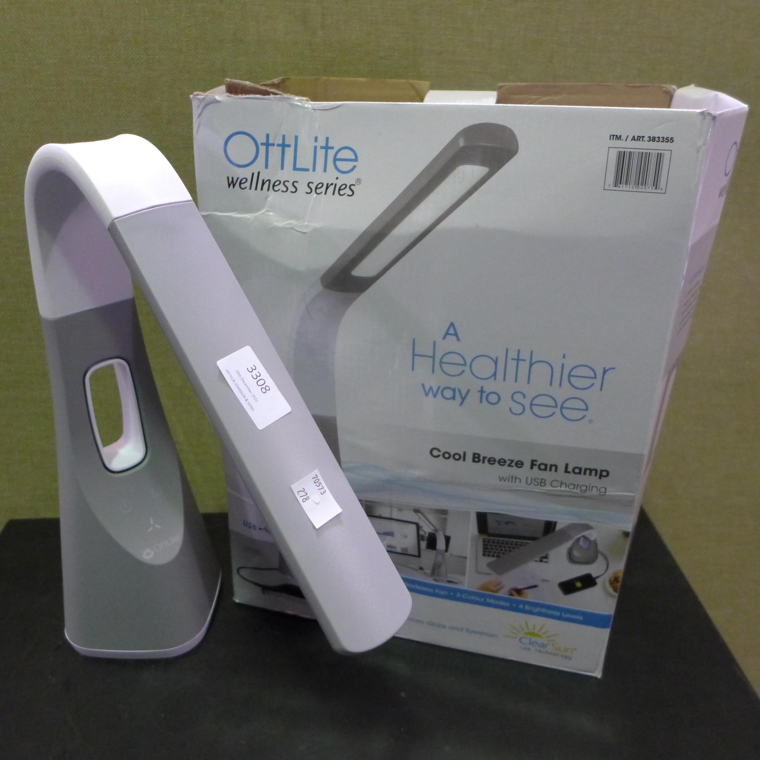 Ottlite Light With Cool Breeze fan & 2.1A USB(278-394) * This lot is subject to vat