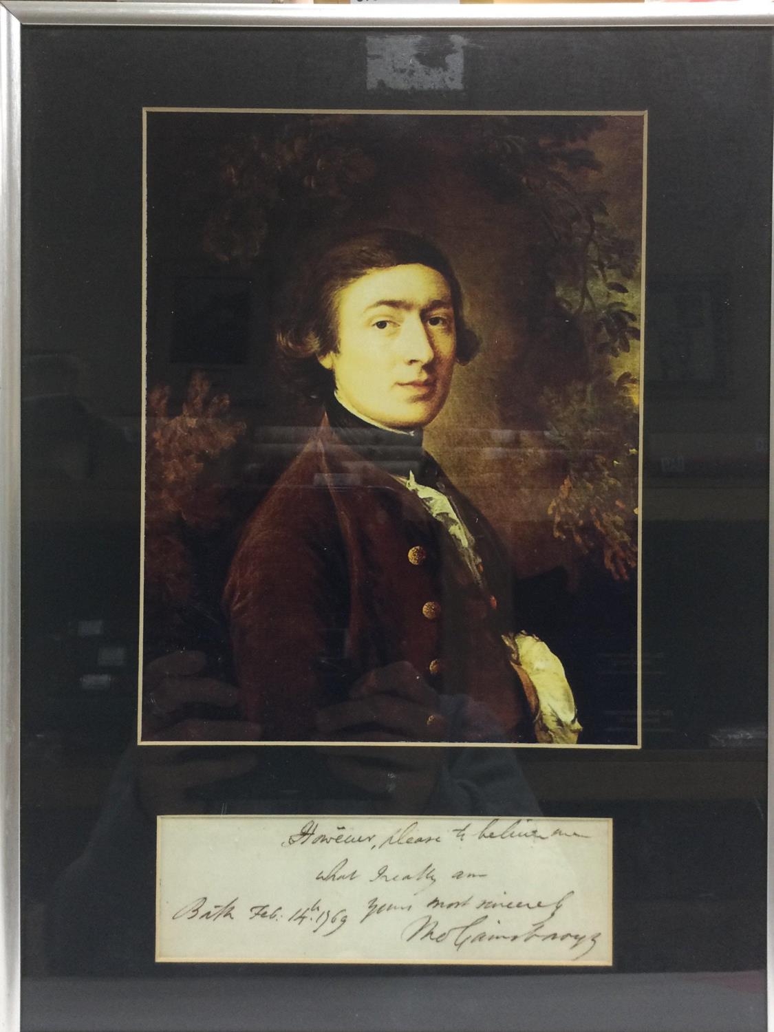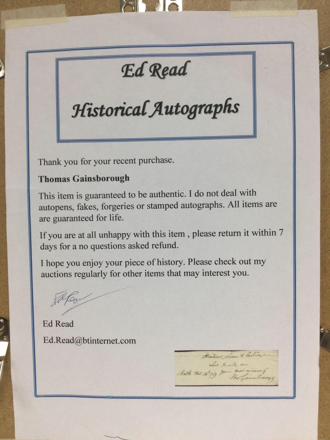 A framed and glazed hand written note and signature of Thomas Gainsborough, 1727-1788, approx 31cm x 42cm. Shipping category D.
