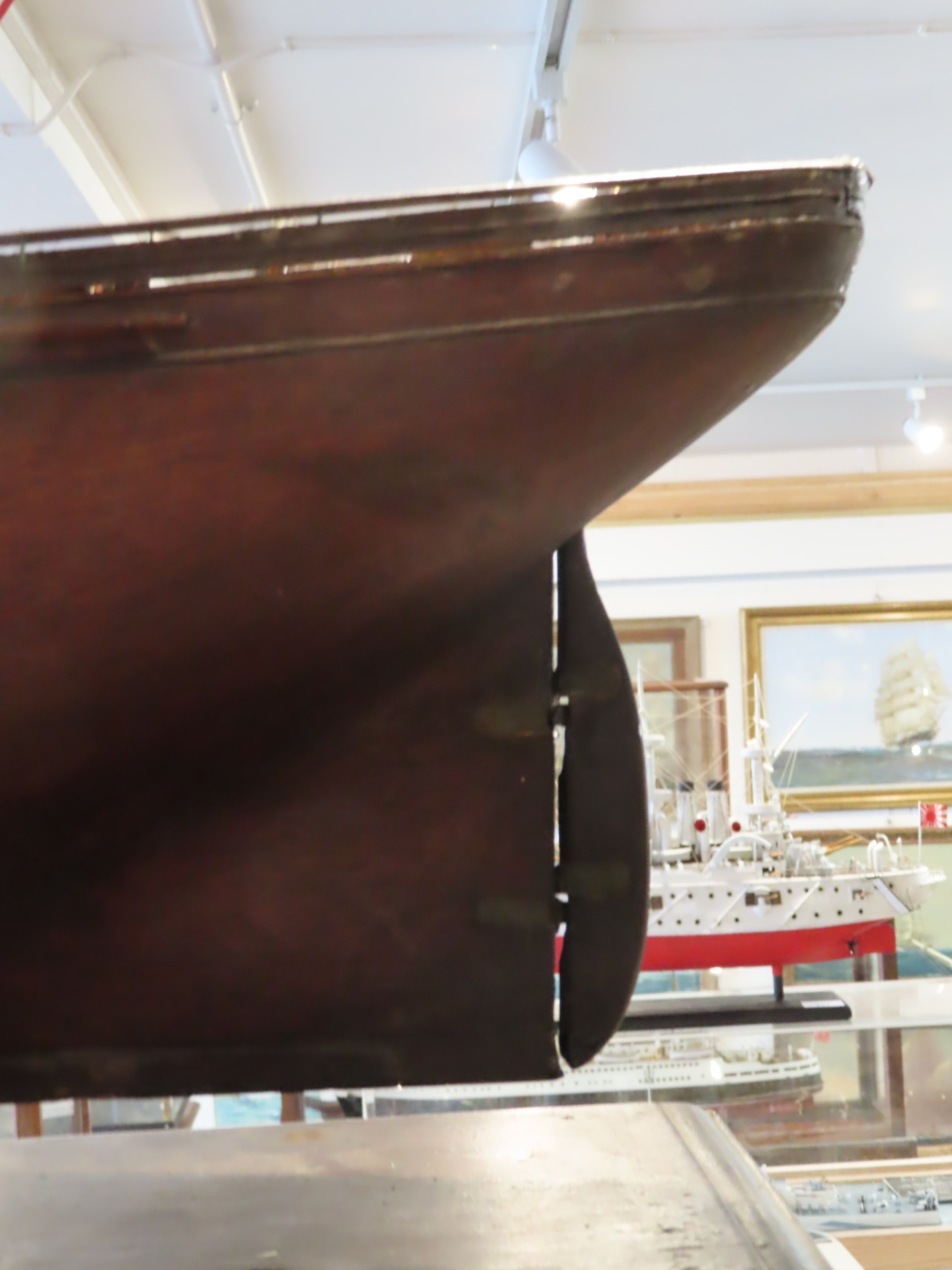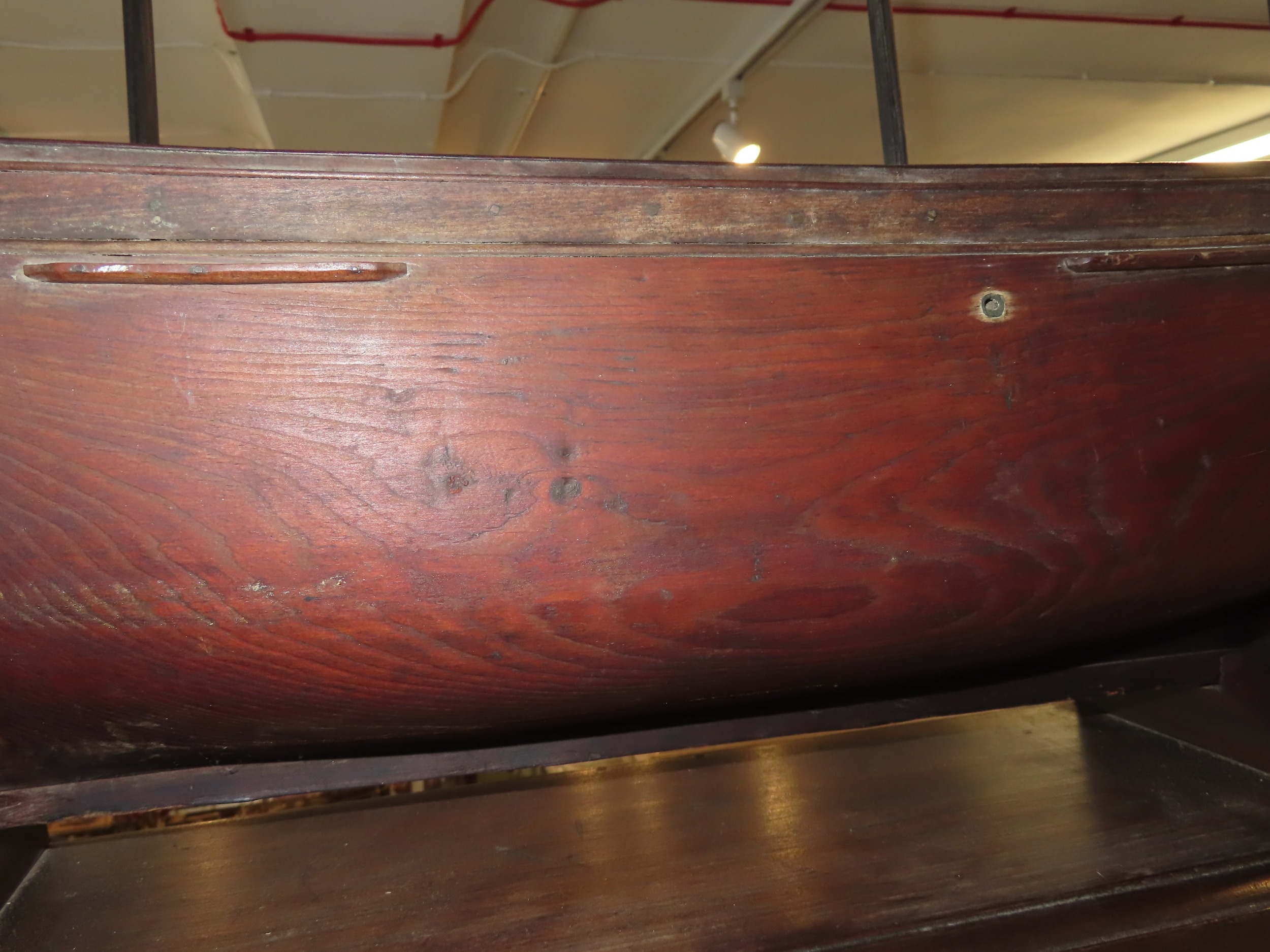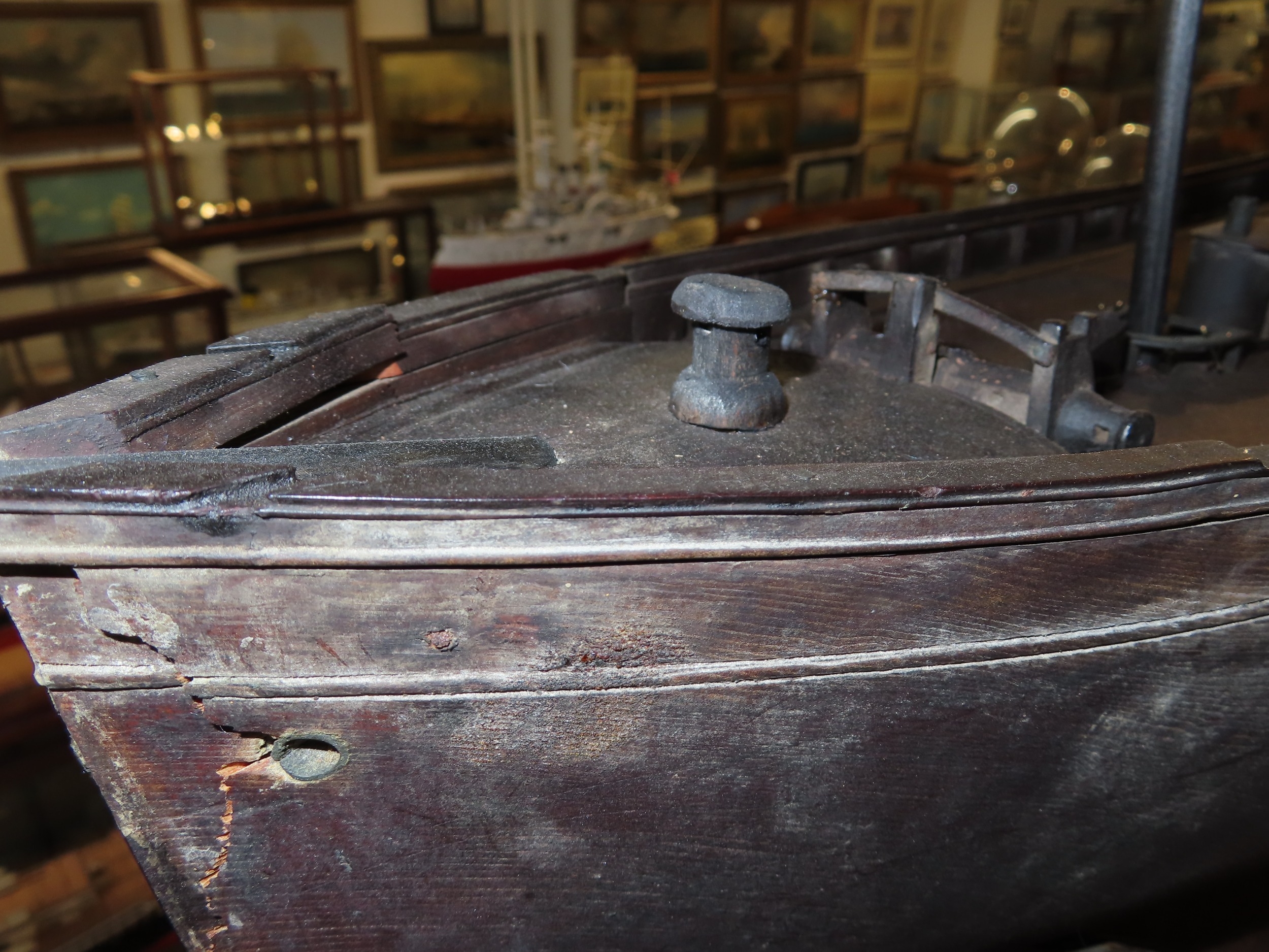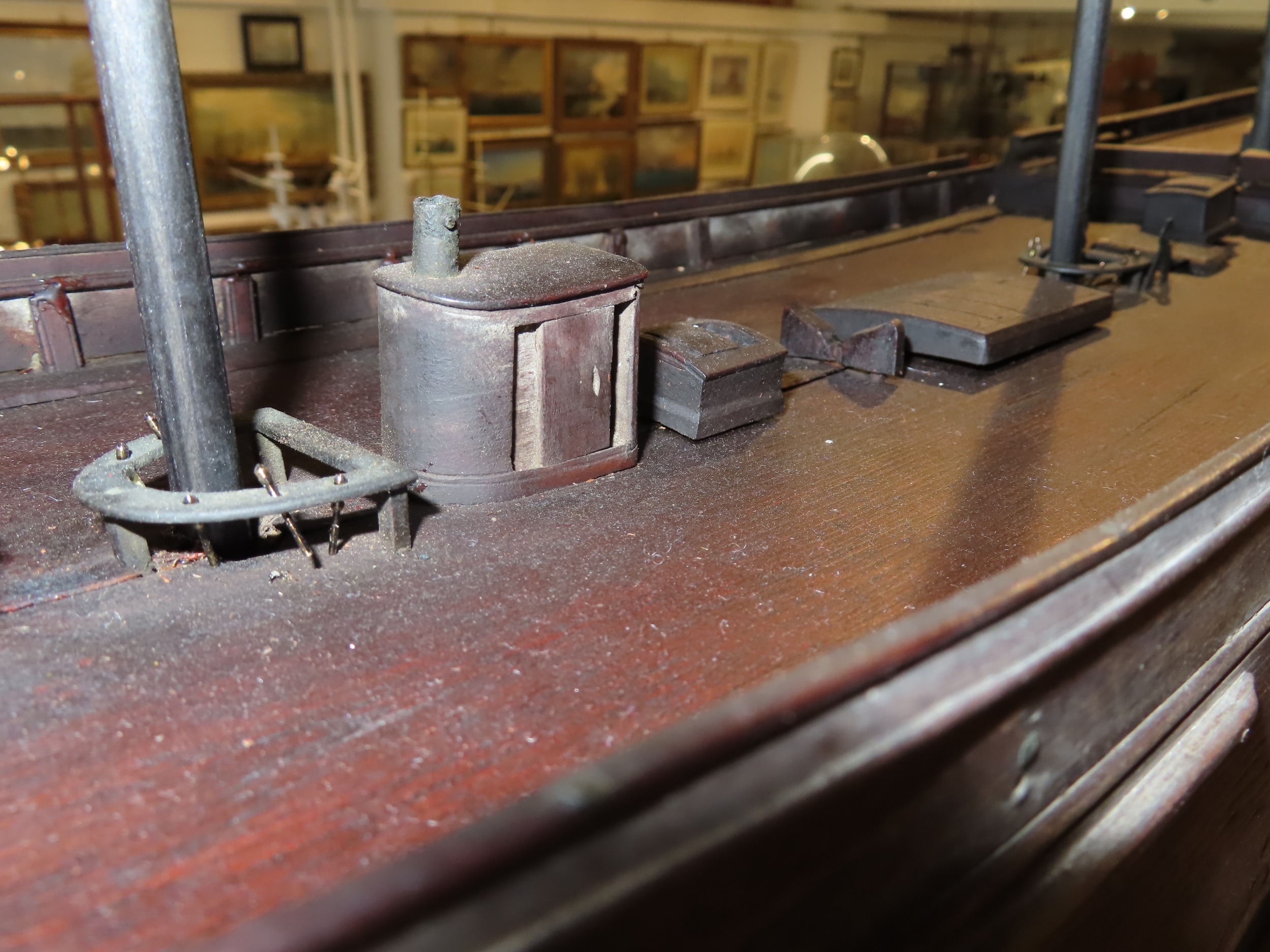 old glue runs, masts probably later, old wear commensurate with age.