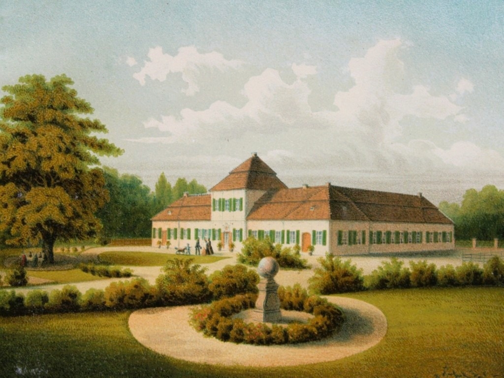 Alexander Duncker - Lithograph of Parey 1857 . This coloured lithograph of Parey is from Die ländlichen Wohnsitze, Schlösser und Residenzen der Ritterschaftlichen Grundbesitzer in der Preussischen Monarchie by Alexander Duncker Published in Berlin 1857.