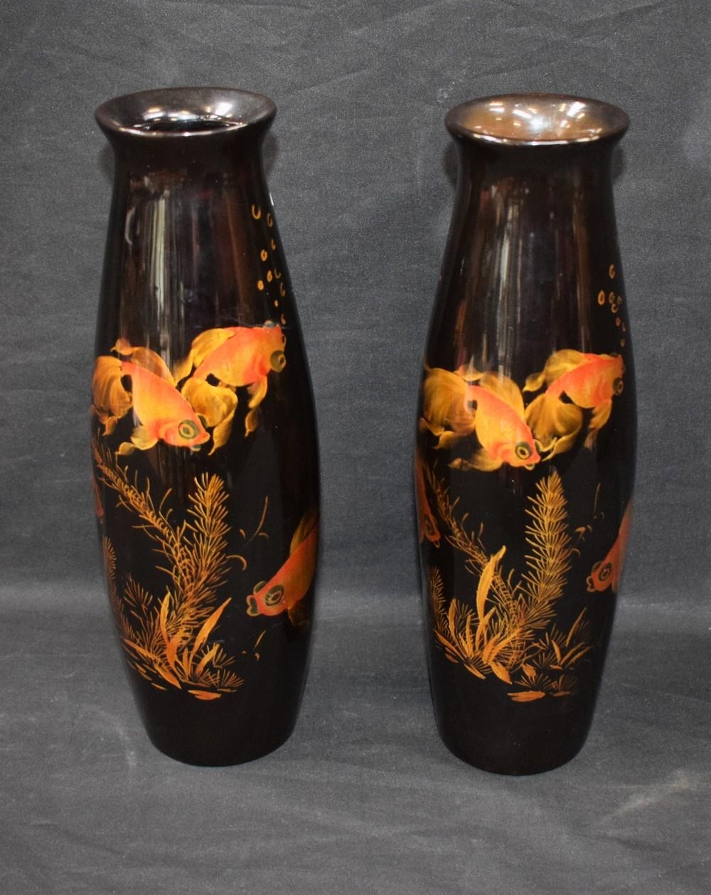 A pair of Chinese lacquer vases, Exotic Fish on a black ground (2)
