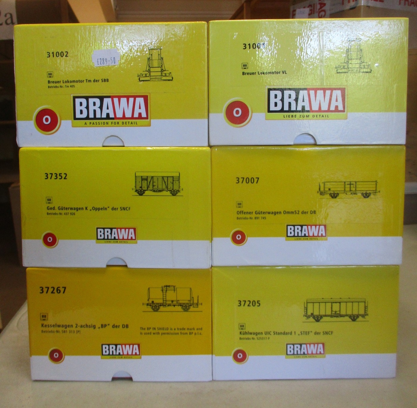 Brawa. Range of O gauge locomotives and wagons, generally excellent to near mint in excellent to near mint boxes, with 31001, 31002, 37007, 37205, 37267 and 37352. Qty 6 (B)