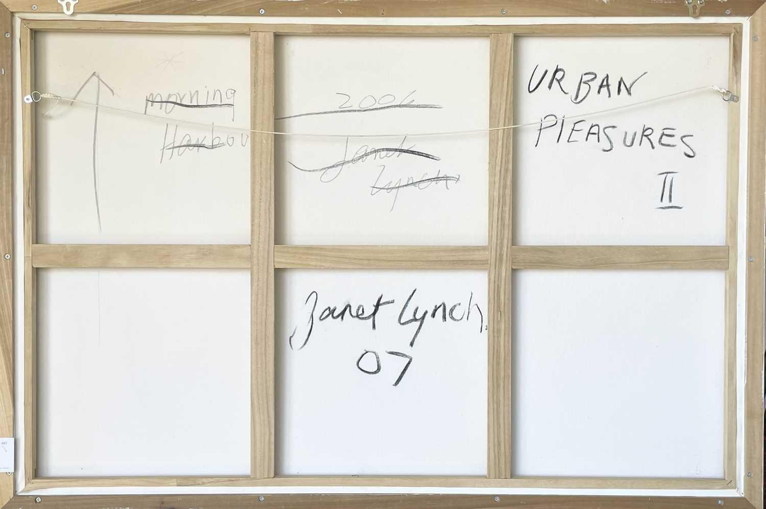 Janet LYNCH (1938) Urban Pleasures II Mixed media on canvas, signed, inscribed and dated '07 to verso, 80 x 120cm. Frame size 83 x 123cm.