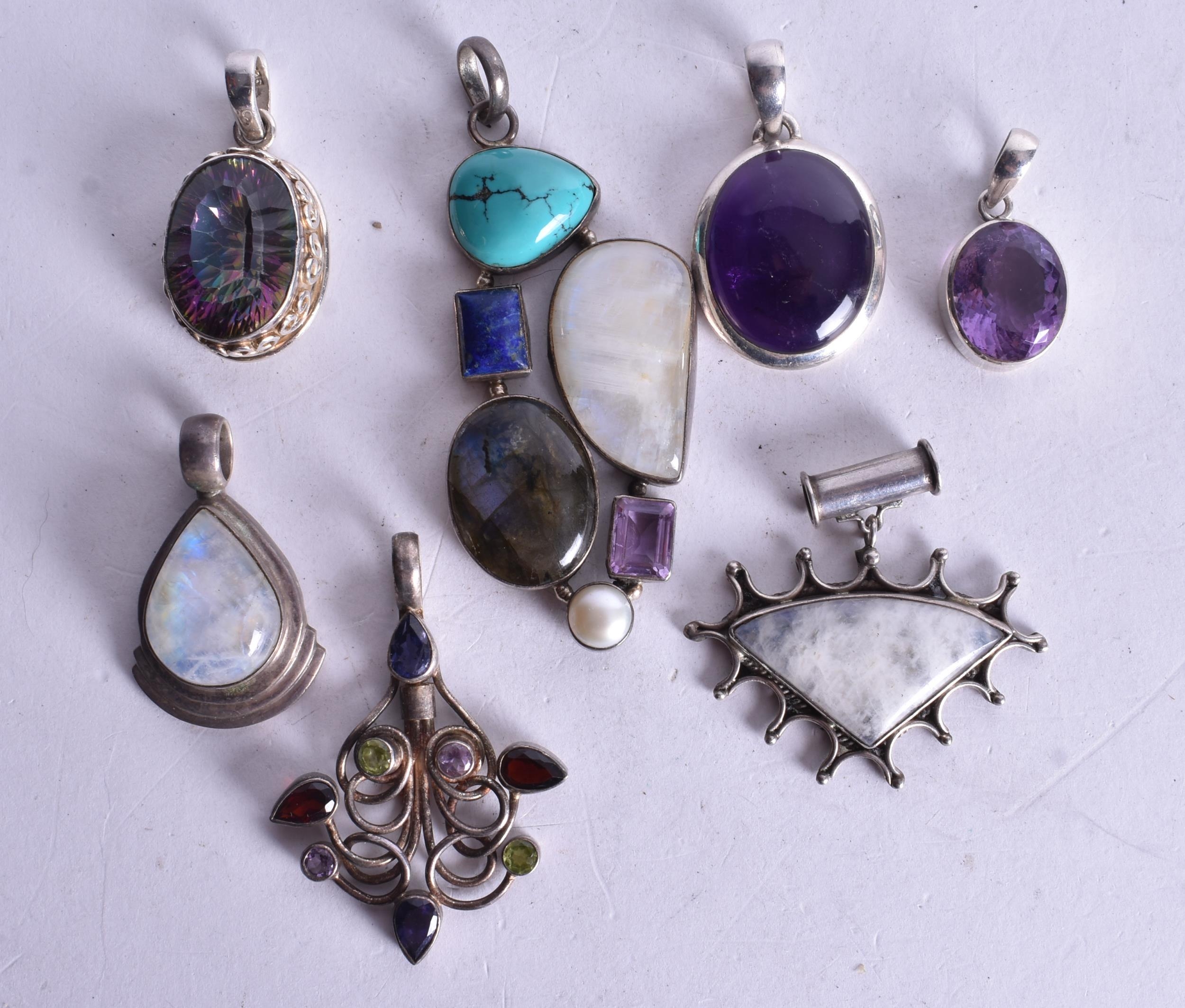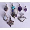 Collection of Sterling Silver Gemstone Pendants inc. Mystic Topaz x 7 (85g).