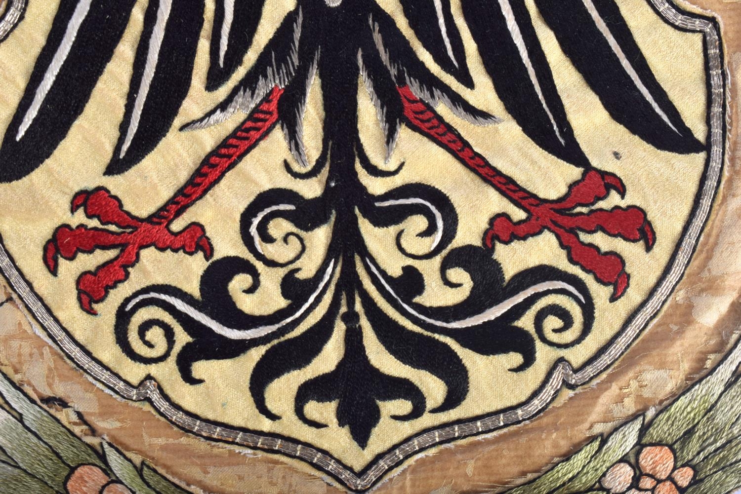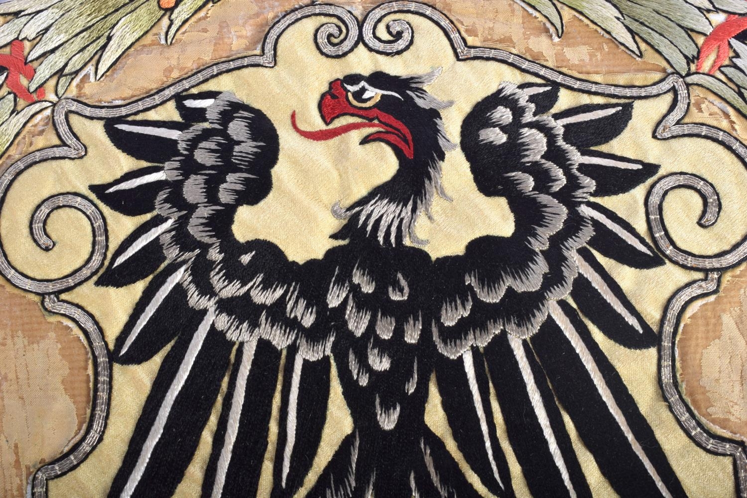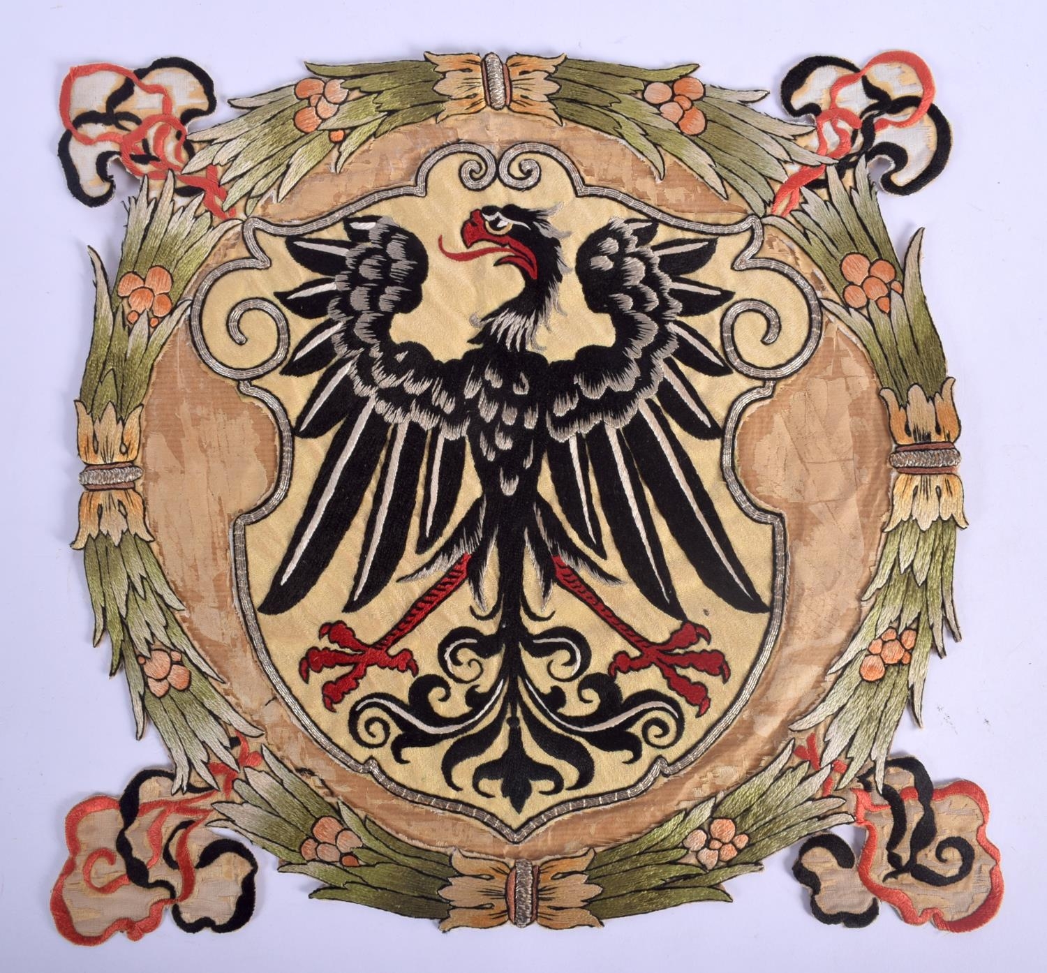 AN UNUSUAL ANTIQUE EUROPEAN SILK EMBROIDERED EAGLE BIRD PANEL possibly Polish or German. 30 cm square.