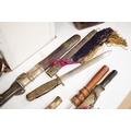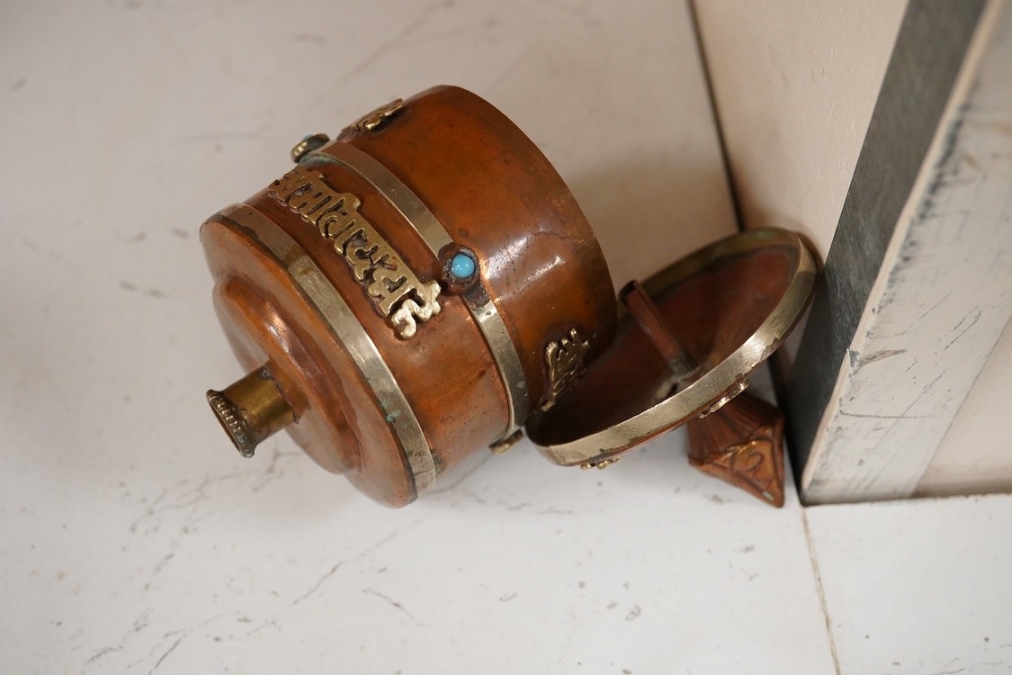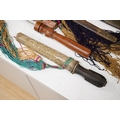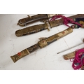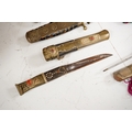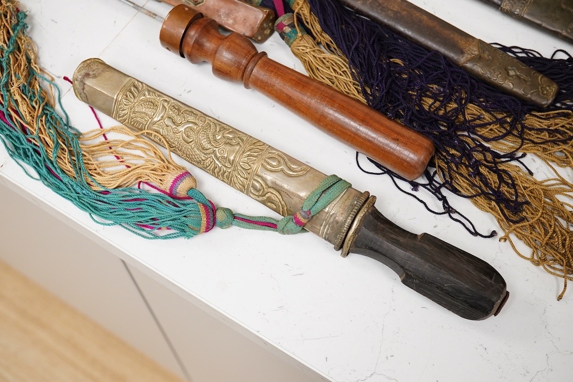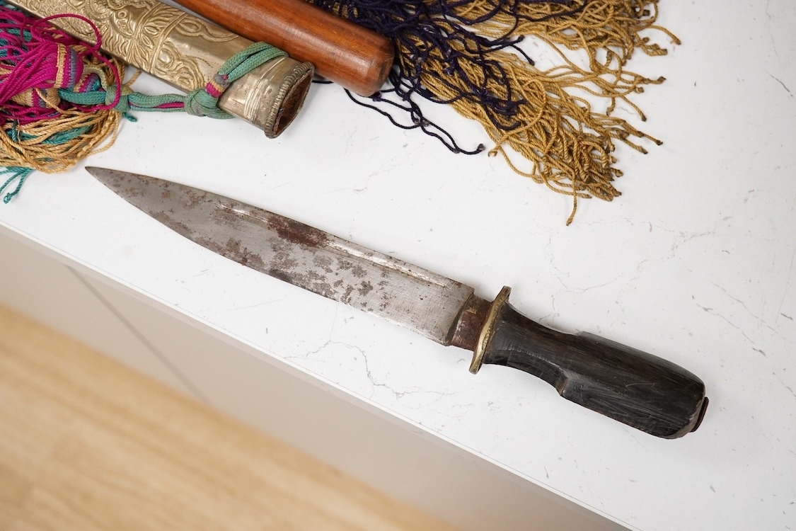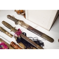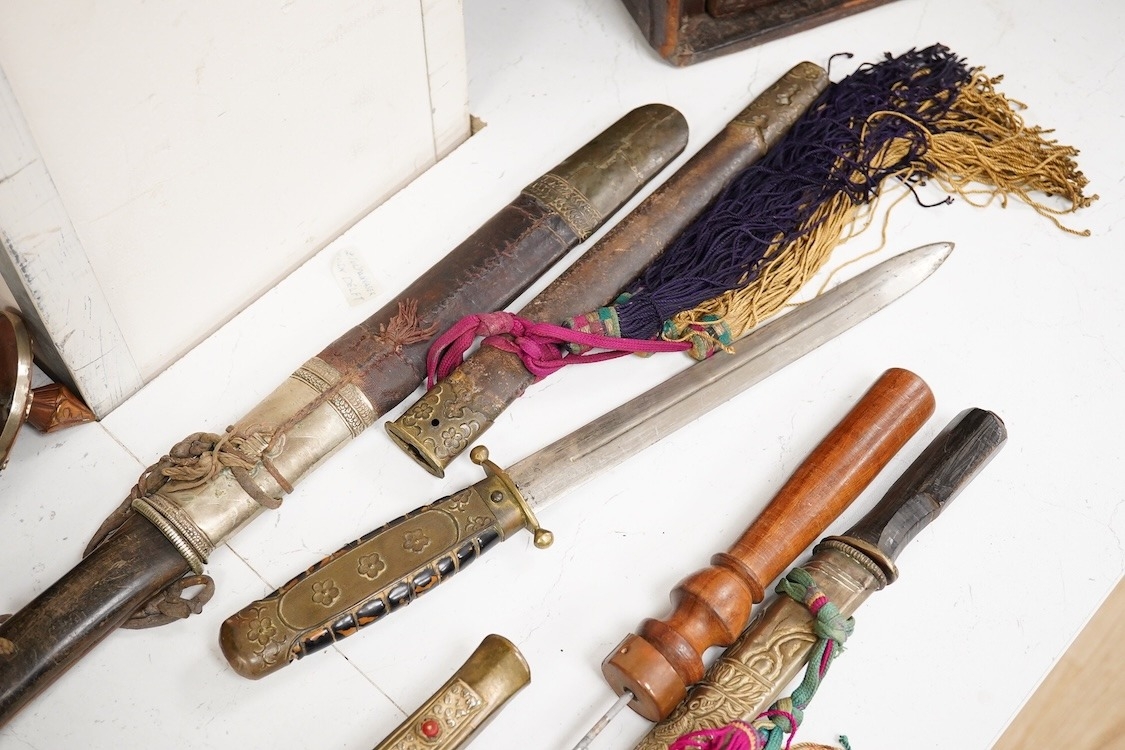 Four Tibetan daggers, early 20th century and a prayer wheel