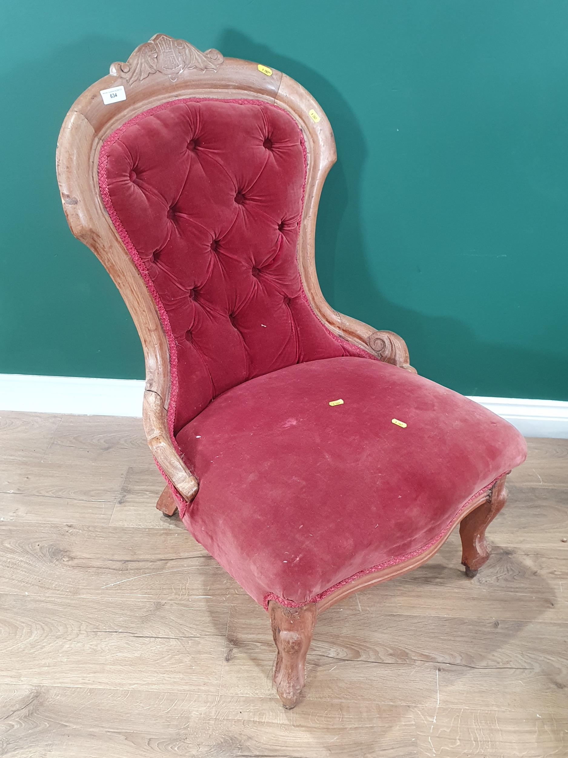 A Victorian style Chair with red button upholstery