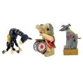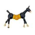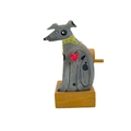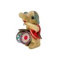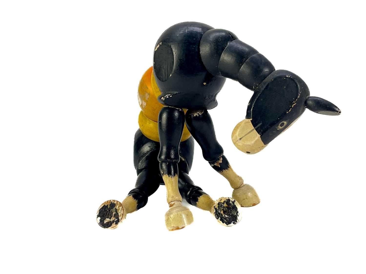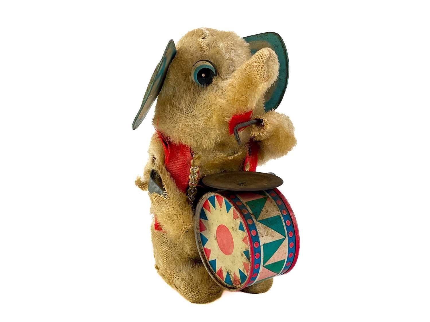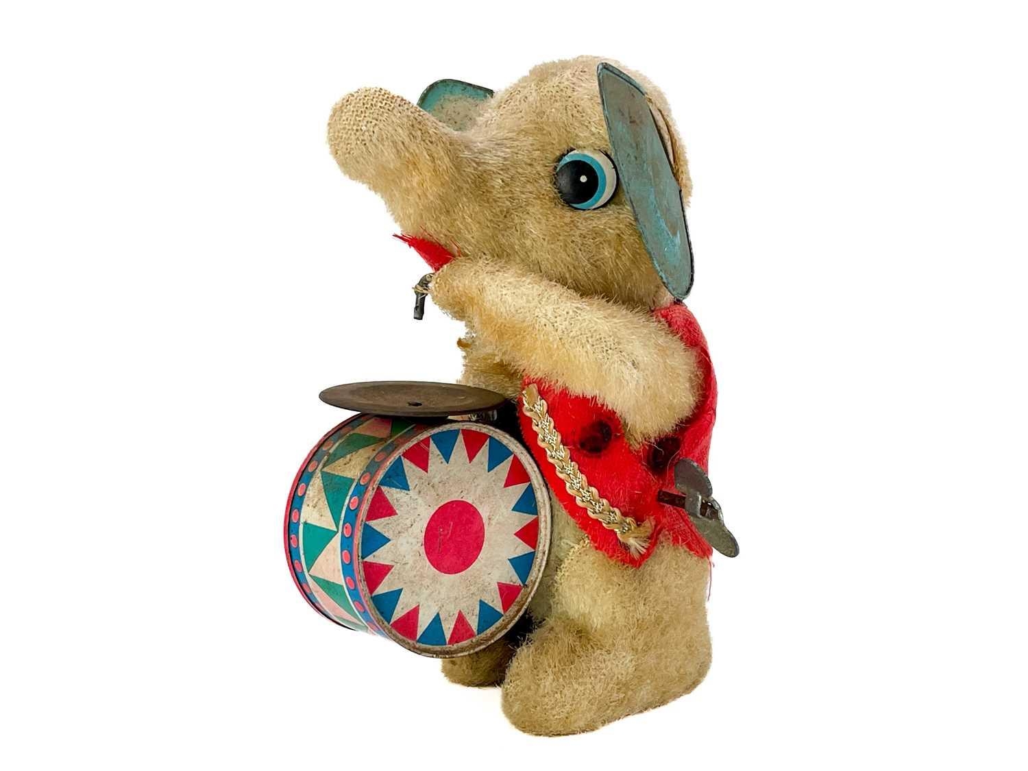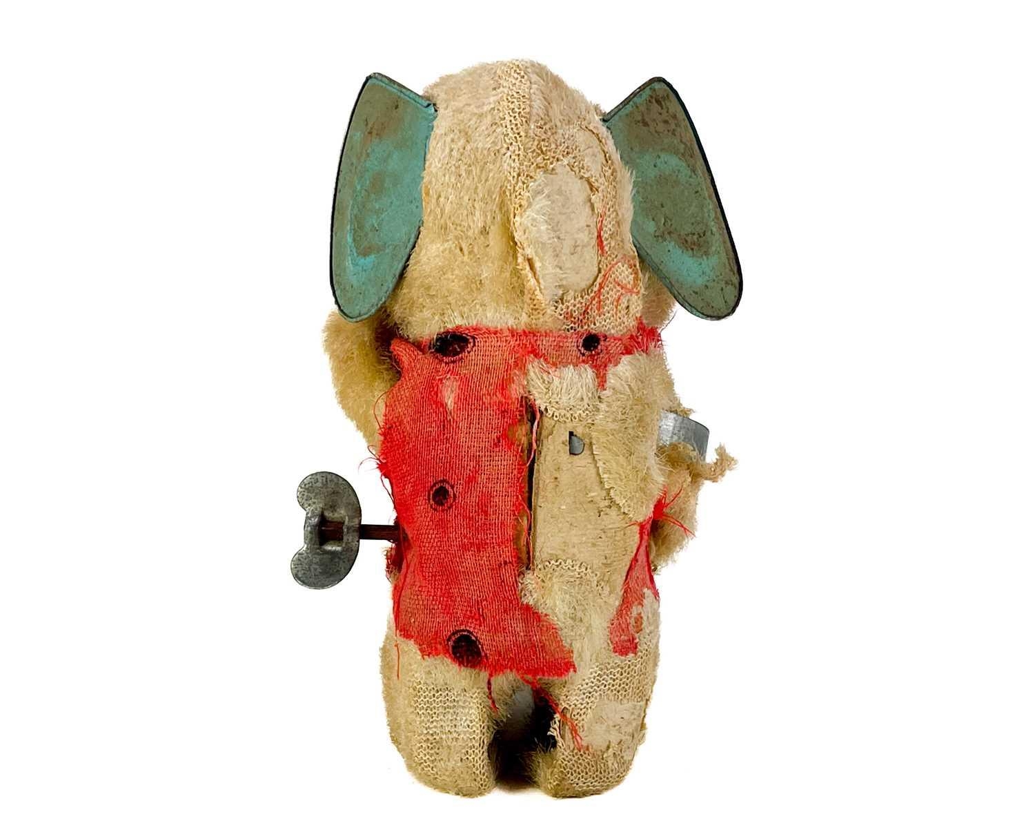 A carved wood automaton in the form of a seated whipped with 'beating' heart. Height 13cm, together with a reticulated model of a horse, and a 1960s Japanese clockwork toy modelled as an elephant playing a drum, height 14cm (3).