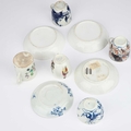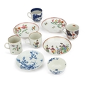 including three coffee cans, a Worcester cup and saucer, two New Hall dishes, etc. (9)