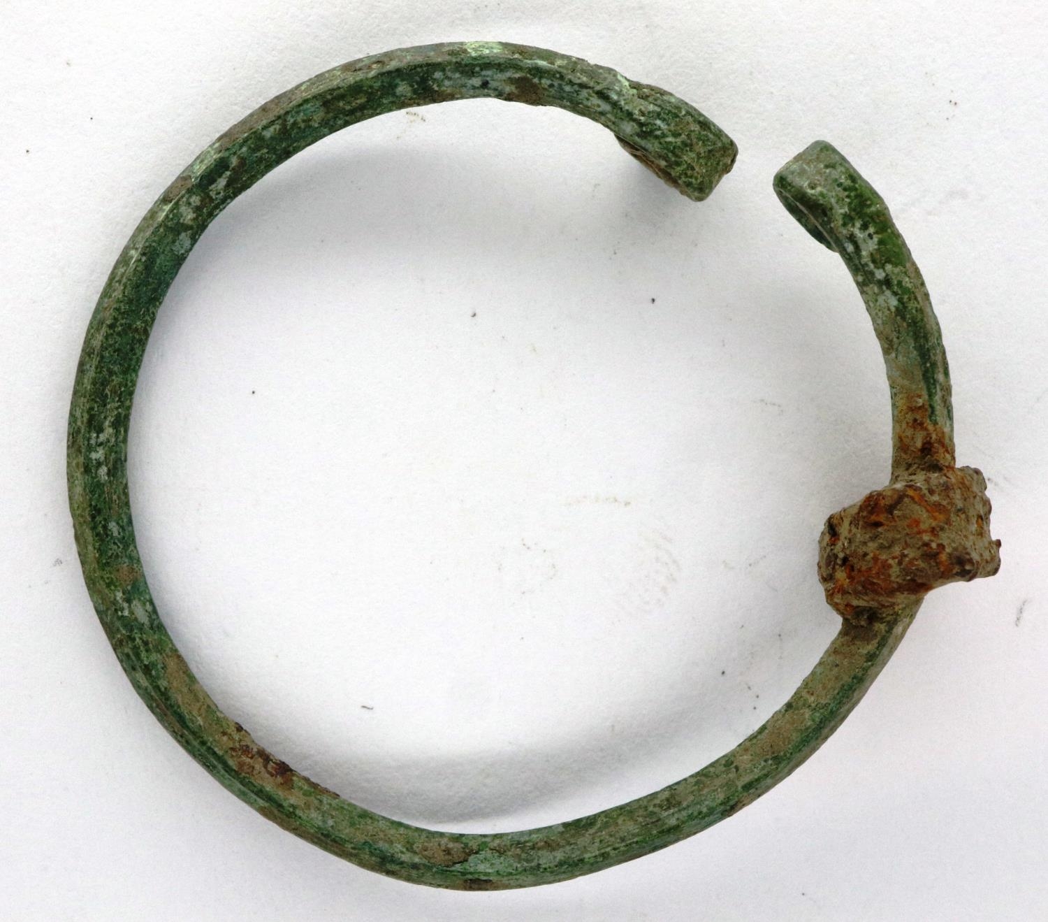 Roman bronze childs bracelet with stone, D: 35 mm. P&P Group 0 (£5+VAT for the first lot and £1+VAT for subsequent lots)