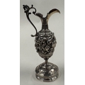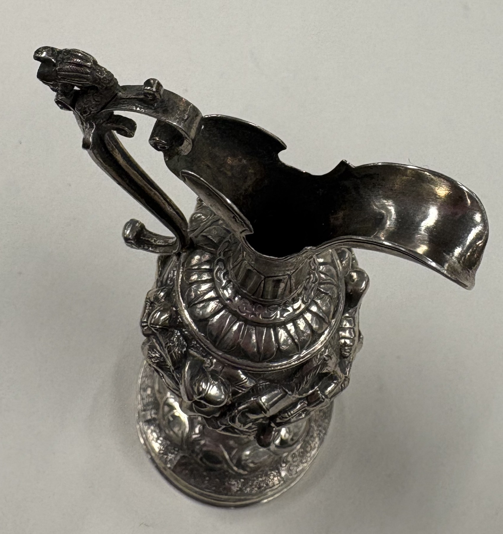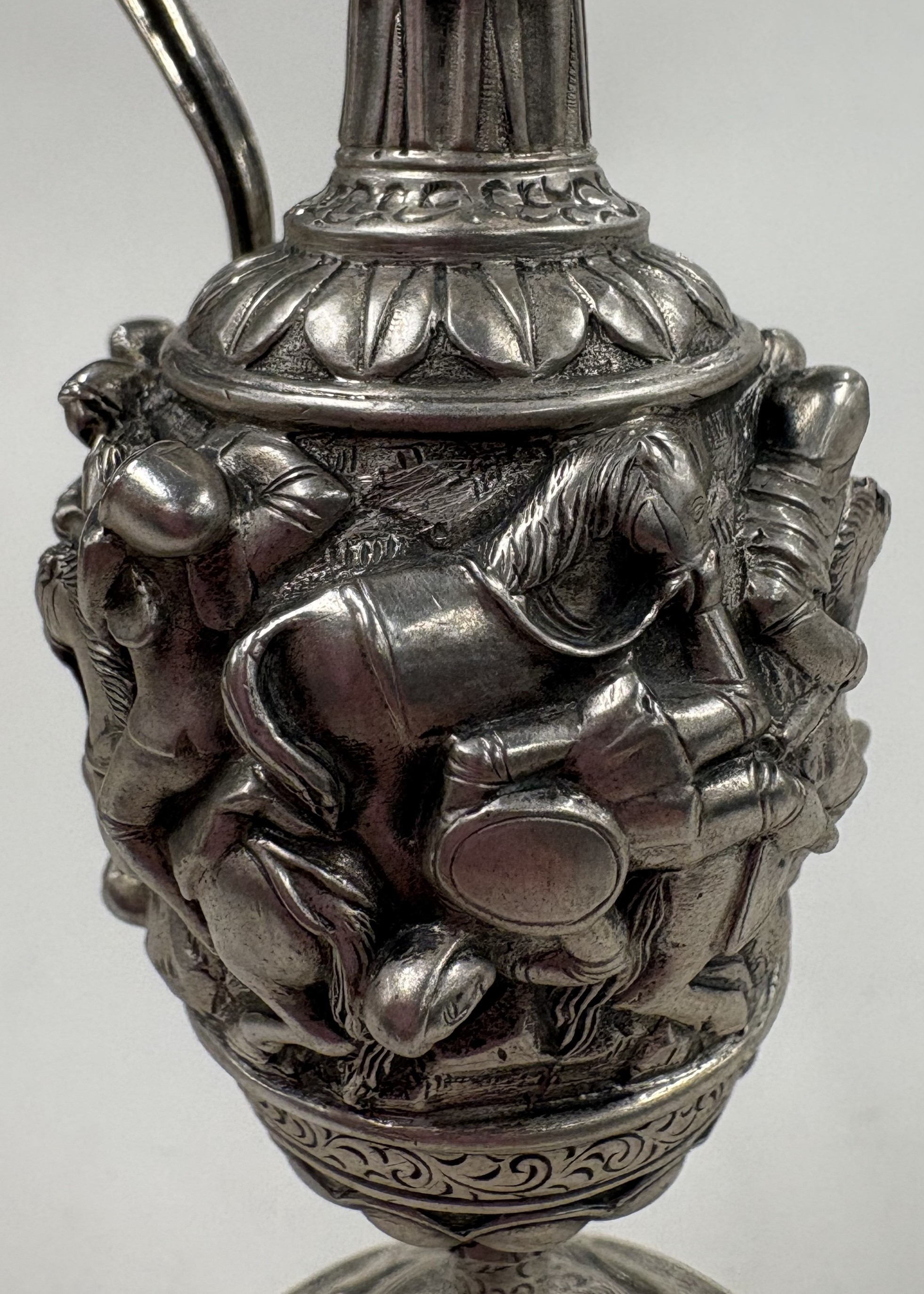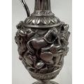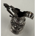 A rare 19th Century silver wine armada jug embossed with fighting scene. Approx. 102 grams. Est. £300 - £400.