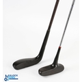 2x Interesting and Early Composite Steel Shafted Putters - "Gallett Greenmaster" centre shaft putter with top aiming line and a longnose putter fitted with coated steel shaft and period red leather full length grip - note hosel damage Note: From The Estate of The Late Tommy Horton MBE, Former Ryder Cup Player and PGA Captain