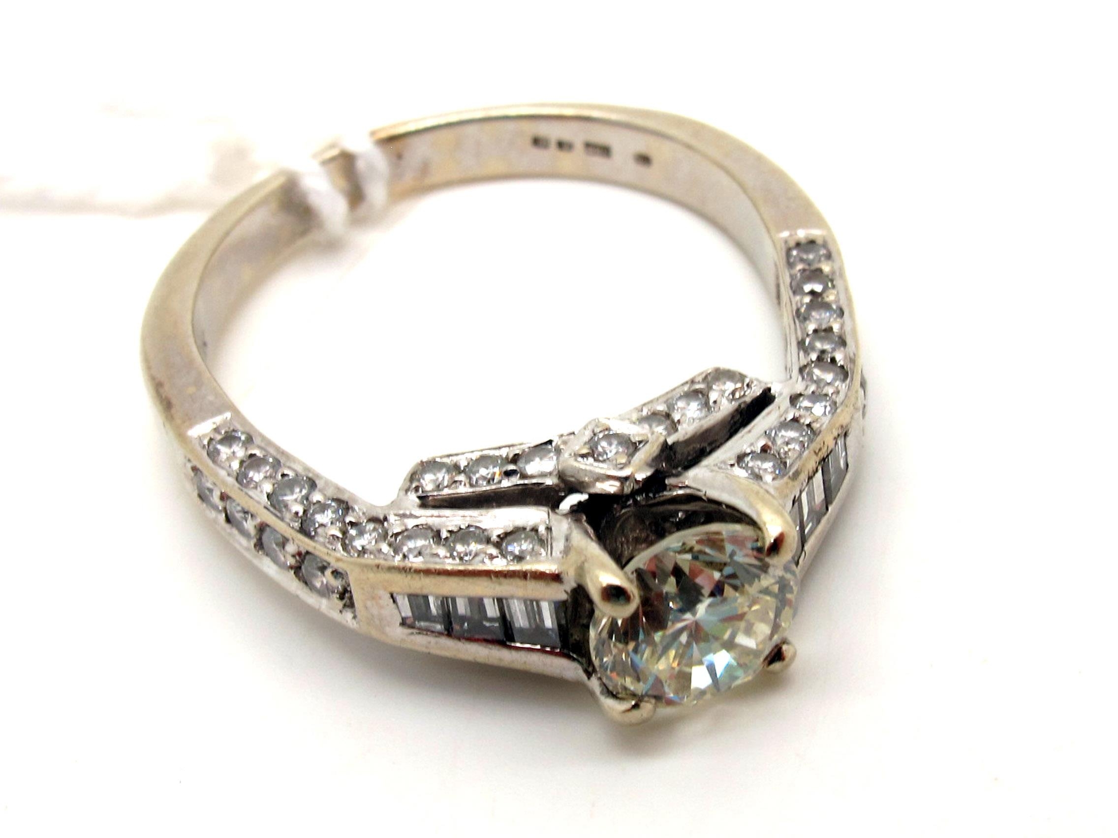 *A.D. Tovey Jewellers (Sheffield) Insurance Valuation states 14ct white gold, estimated central diamond weight (due to setting) 0.90pts, £7680, dated May 2014.