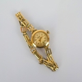 A late 20th century 9ct gold cased ladies 'Everite' wristwatch, the circular cream coloured dial with arrow shaped and Arabic numerals, set to plain polished case, 2cm wide (including gold plated crown) upon associated gold plated bracelet, gross weight 12gms (including movement and bracelet)