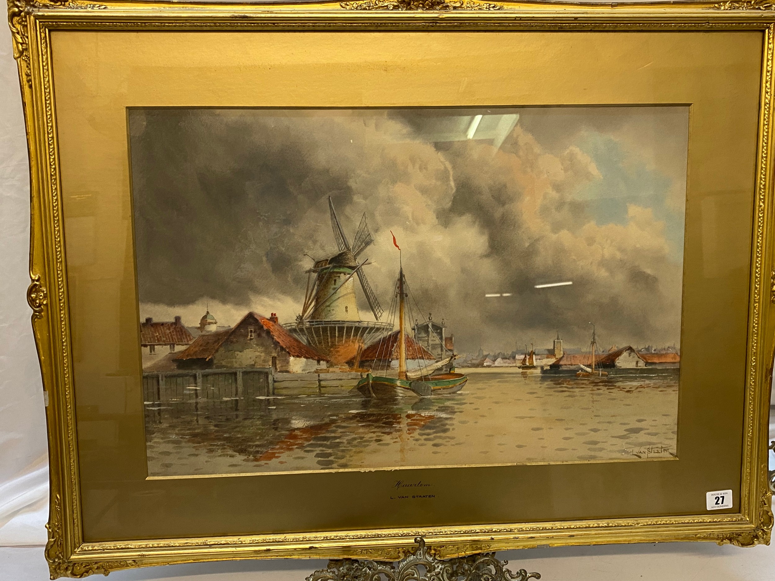 Louis Van Staaten. A signed watercolour - Haarlem, mounted, framed and glazed - 15 1/2in. x 23 1/2in.