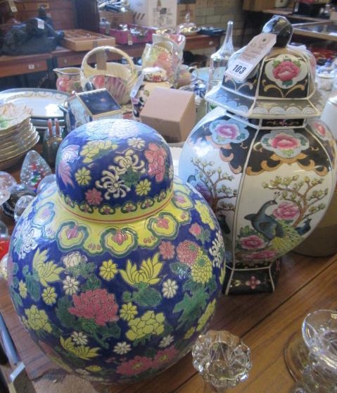 TWO LARGE ORIENTAL LIDDED VASES