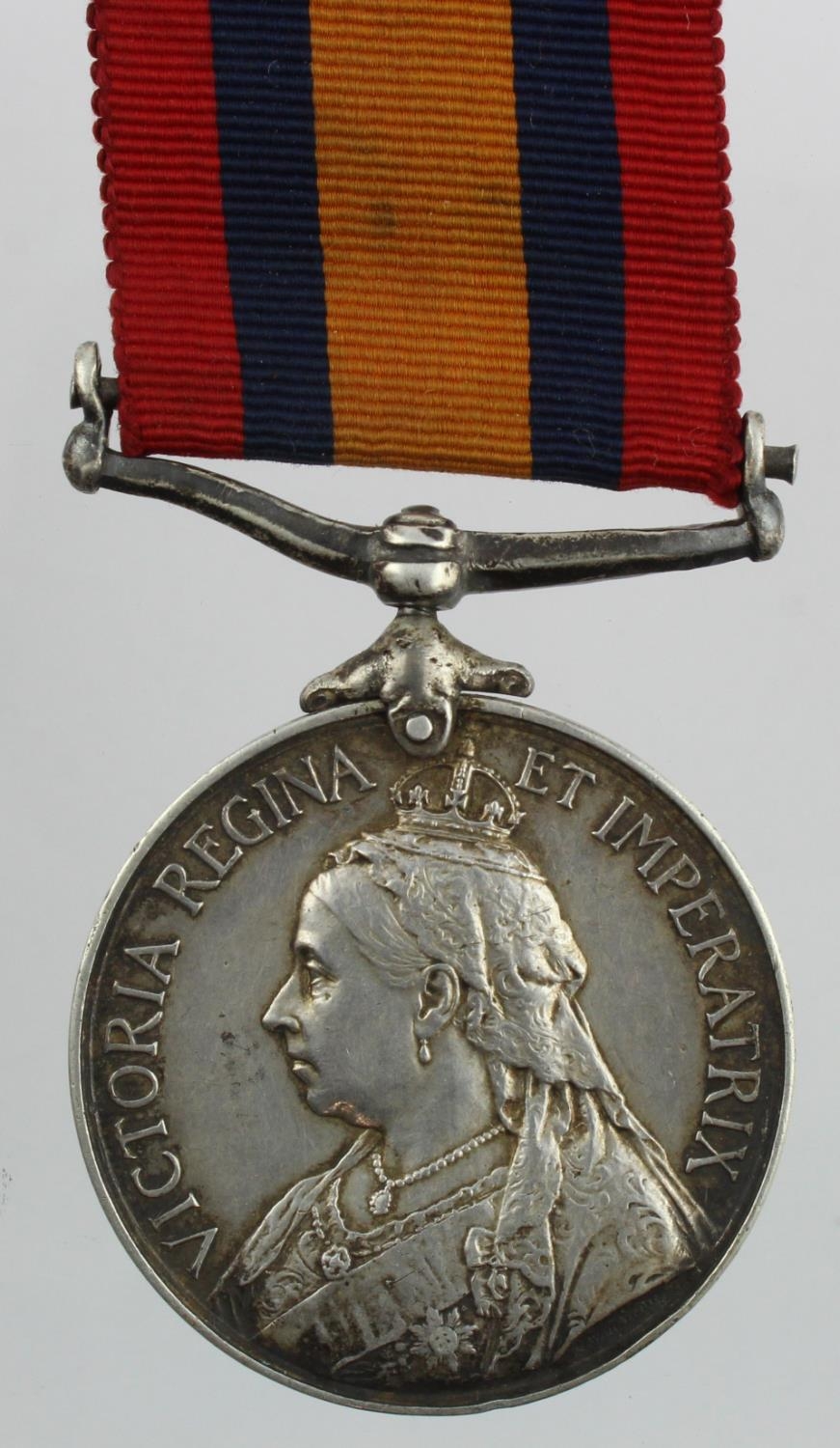 QSA no bars, named (6547 Pte T Simms Wilts Regt). Served with 3rd Bn. Suspension bar damaged and a/f. Sold as seen
