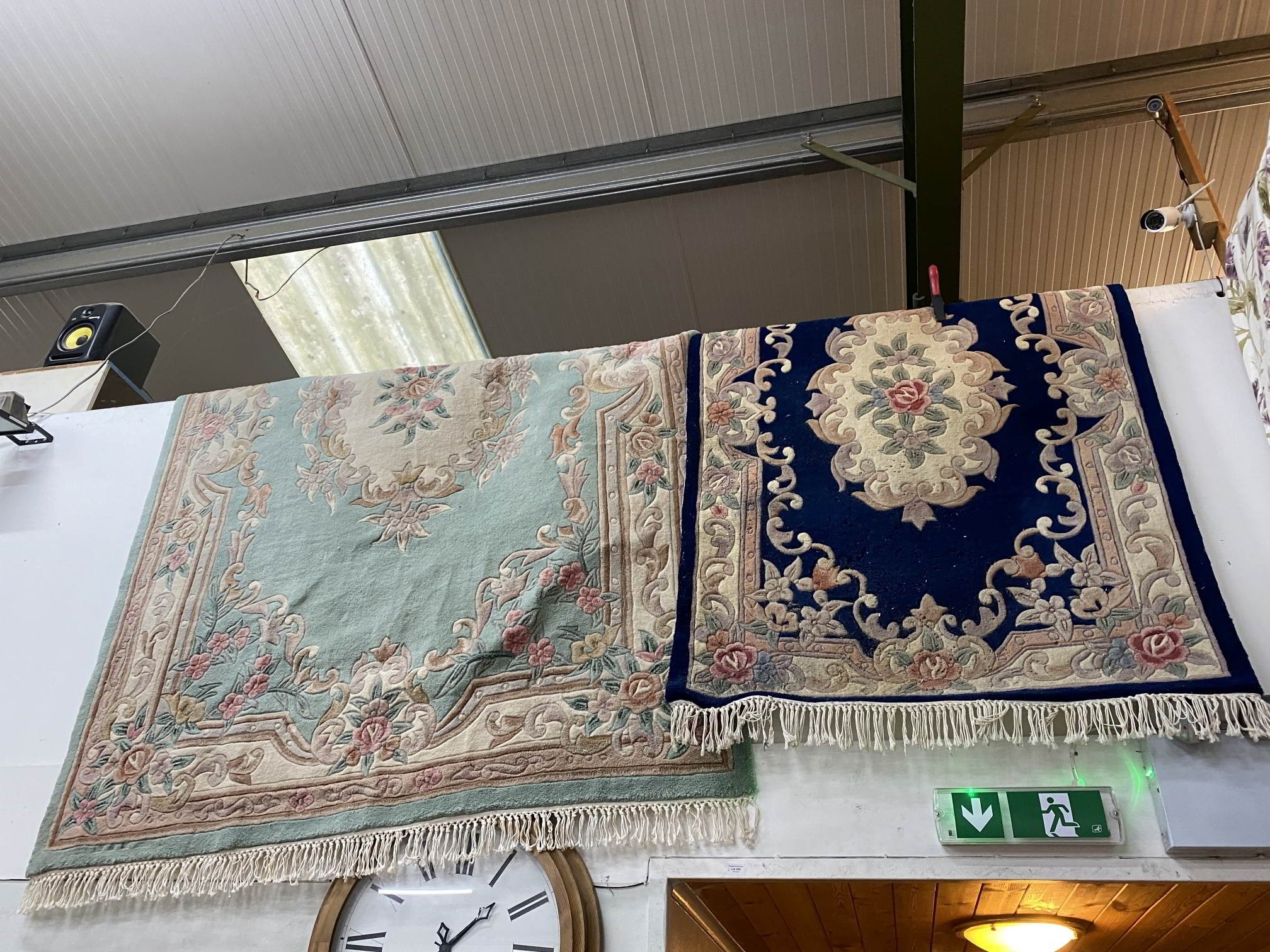 Blue ground oriental rug 185 x 120cm and a green ground Oriental rug 230 x 180cm