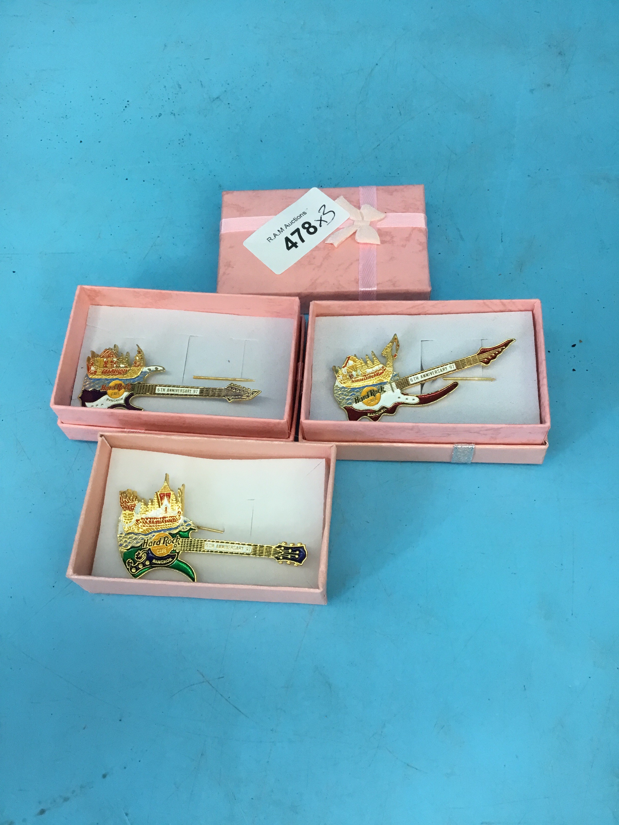 Boxed Hard Rock Cafe Guitar Brooches x3