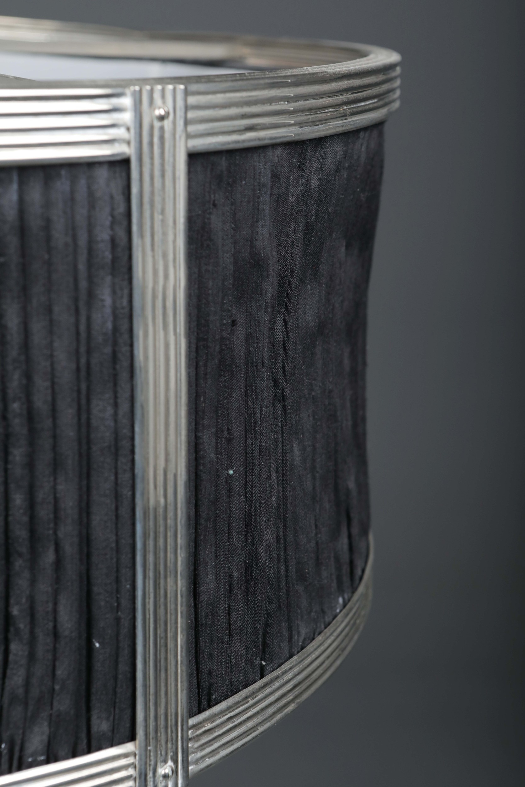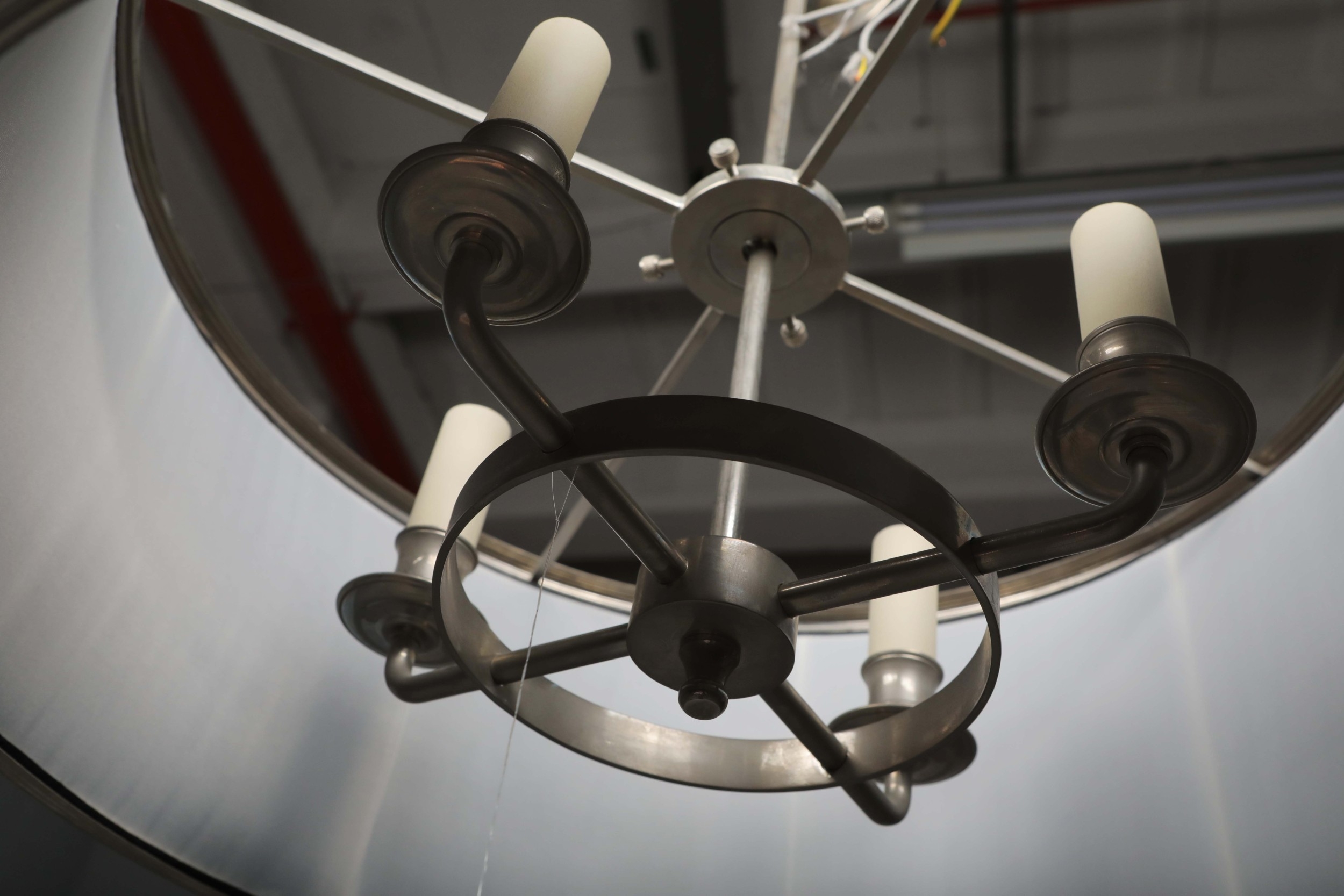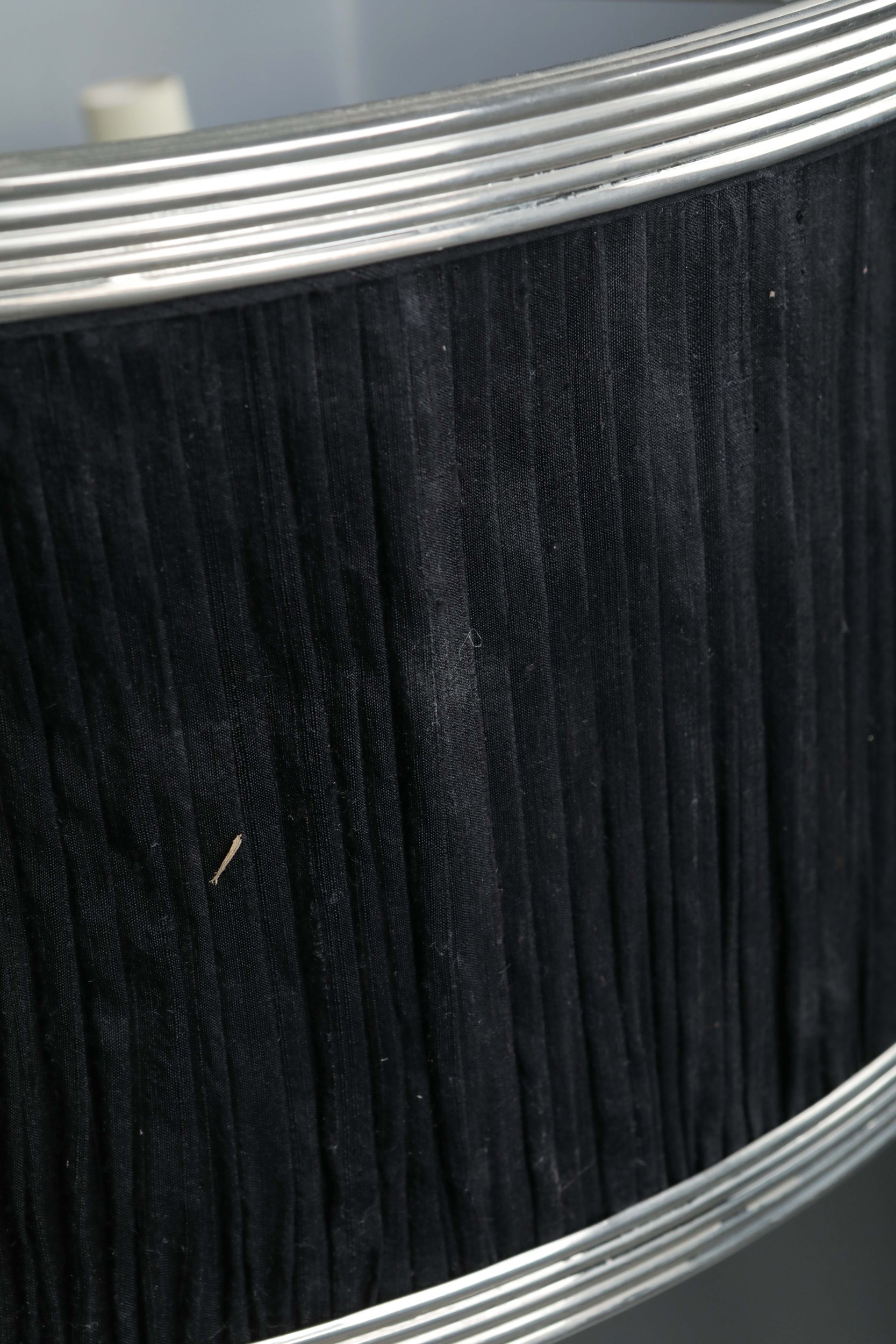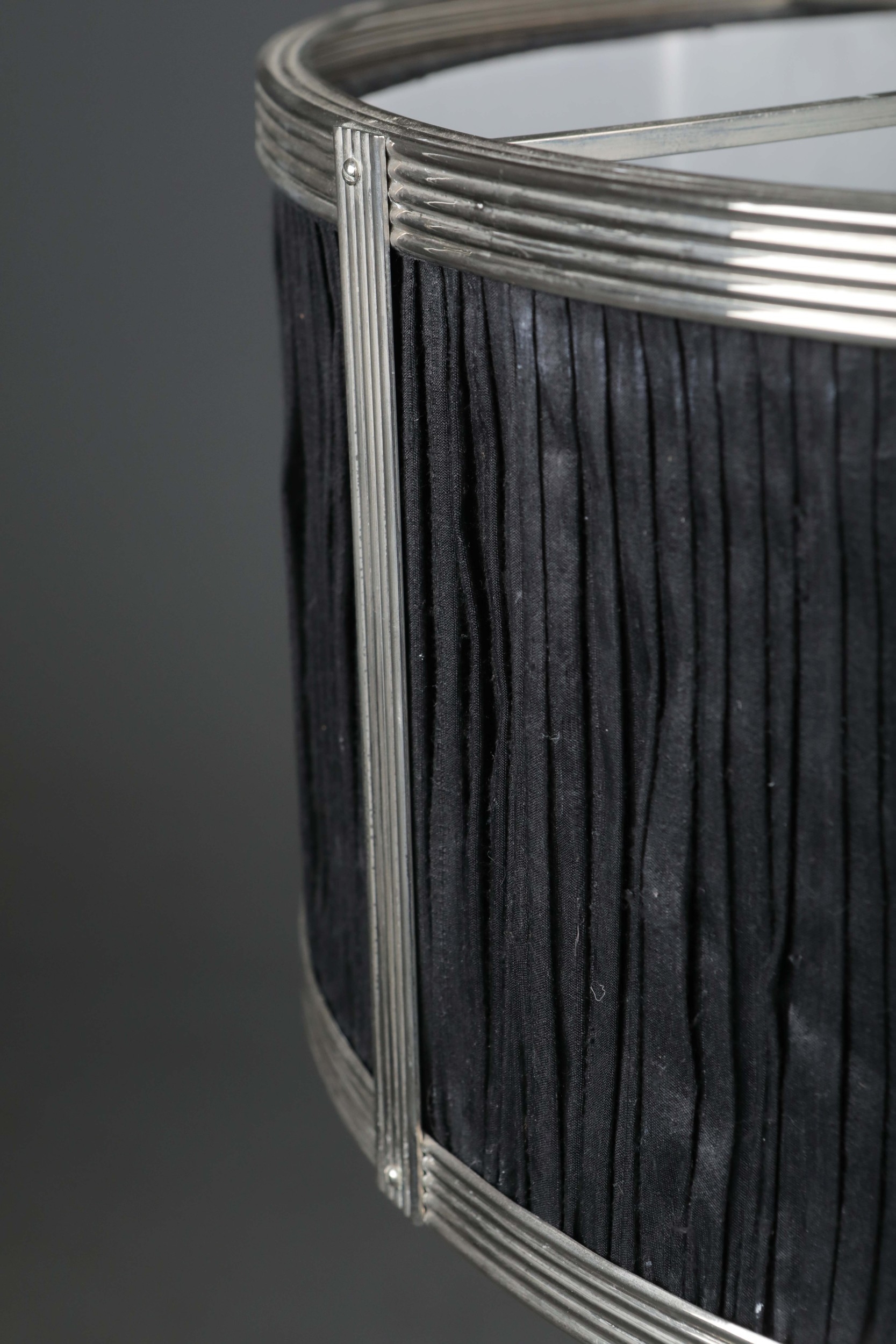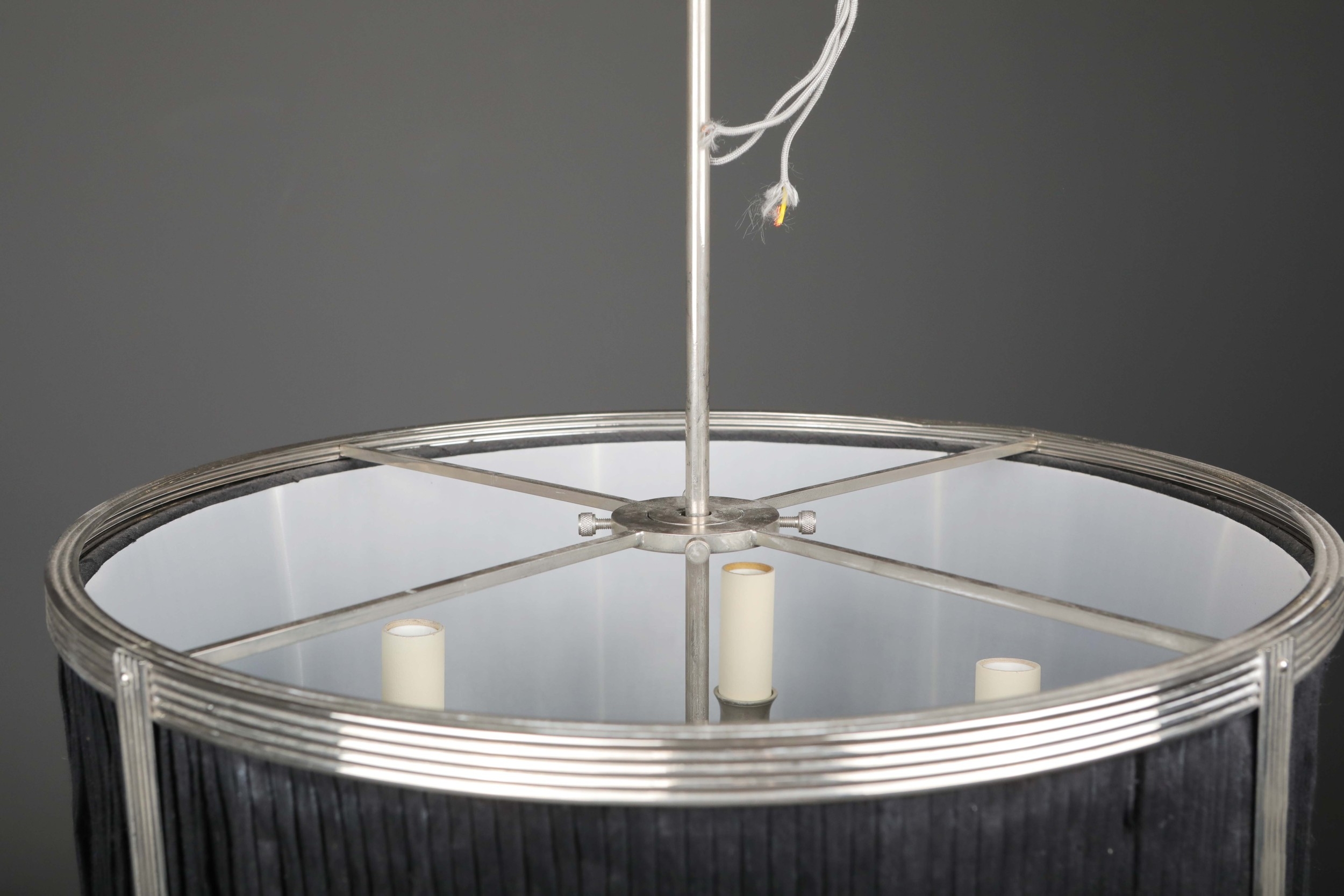 CHARLES EDWARDS HANGING SILK DRUM SHADE LIGHT. 85cm t x 50 cm w approx.