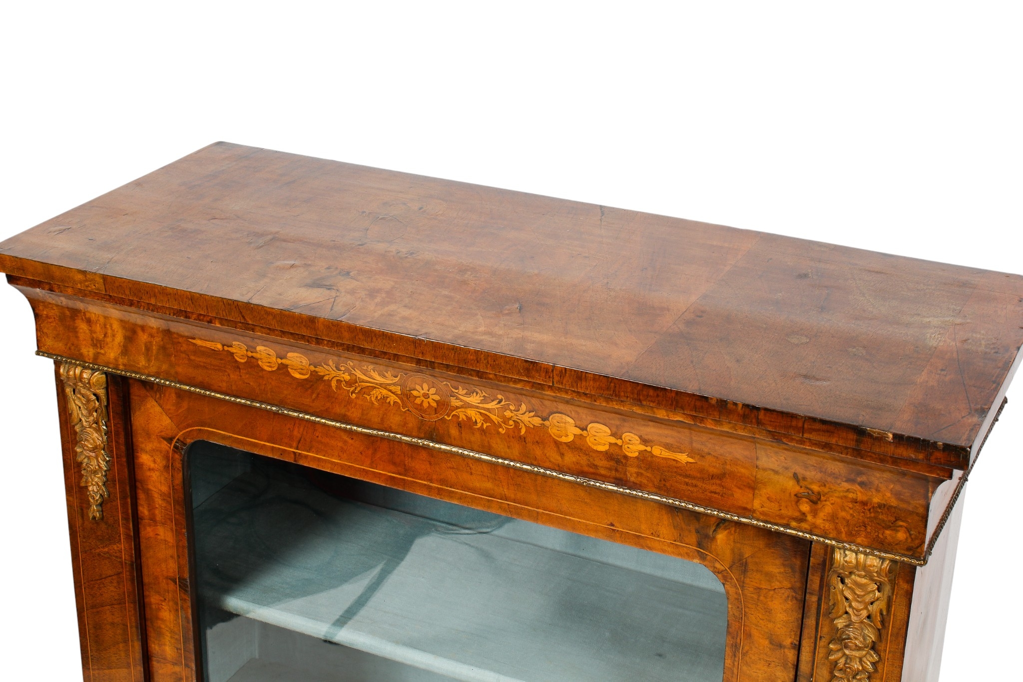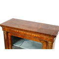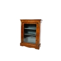 A 19th century inlaid mahogany pier cabinet. Having a glazed door opening to reveal two fixed shelves, raised on a plinth base. H103cm x W78cm x D32cm