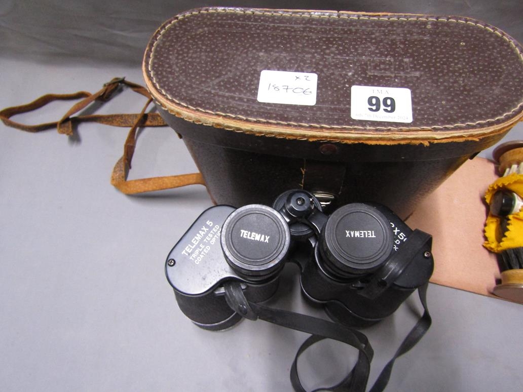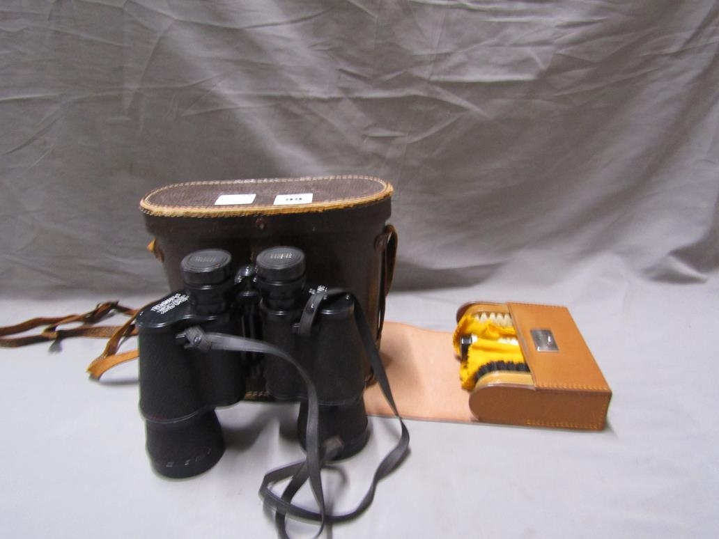 PAIR OF FIELD BINOCULARS; SHOE SHINE KIT