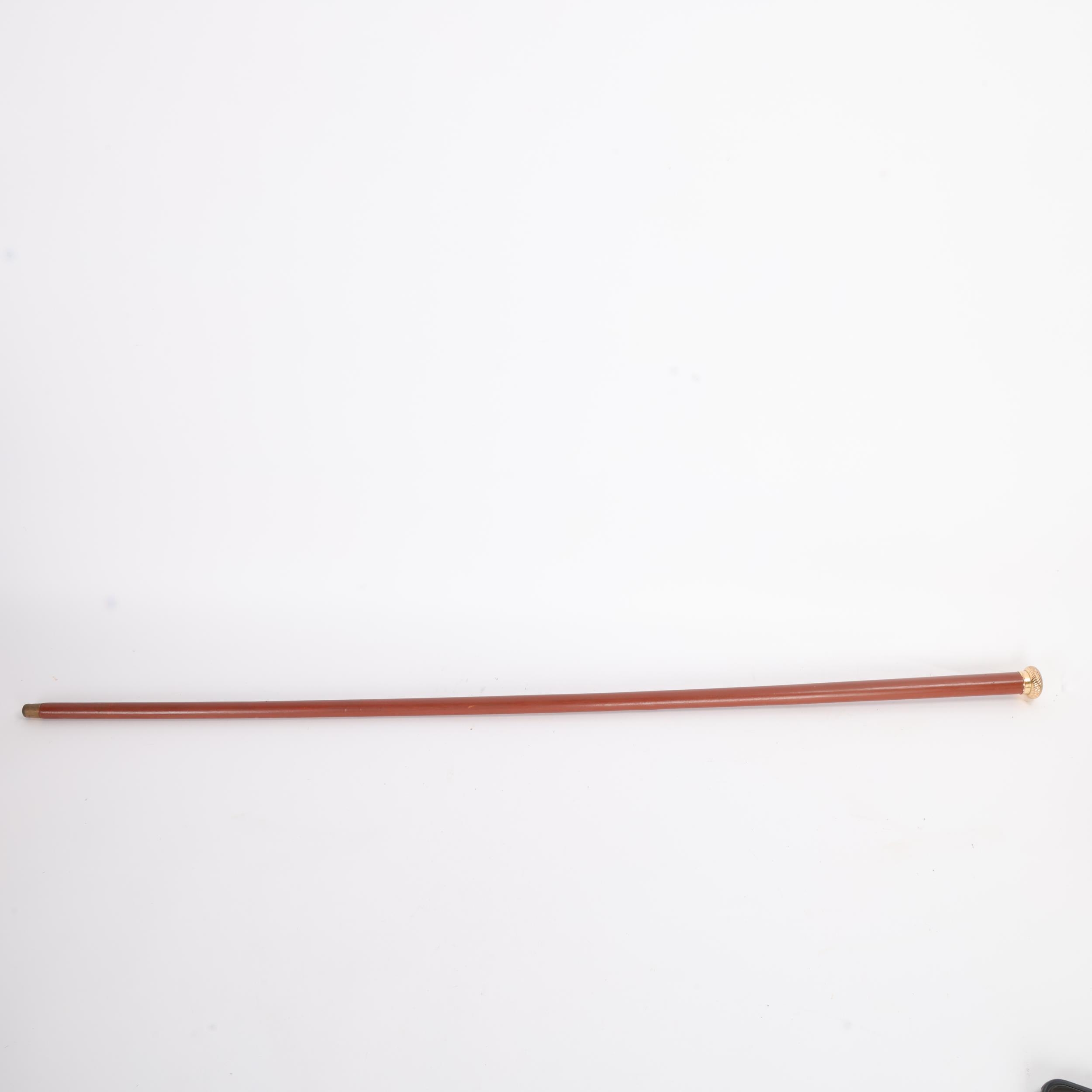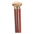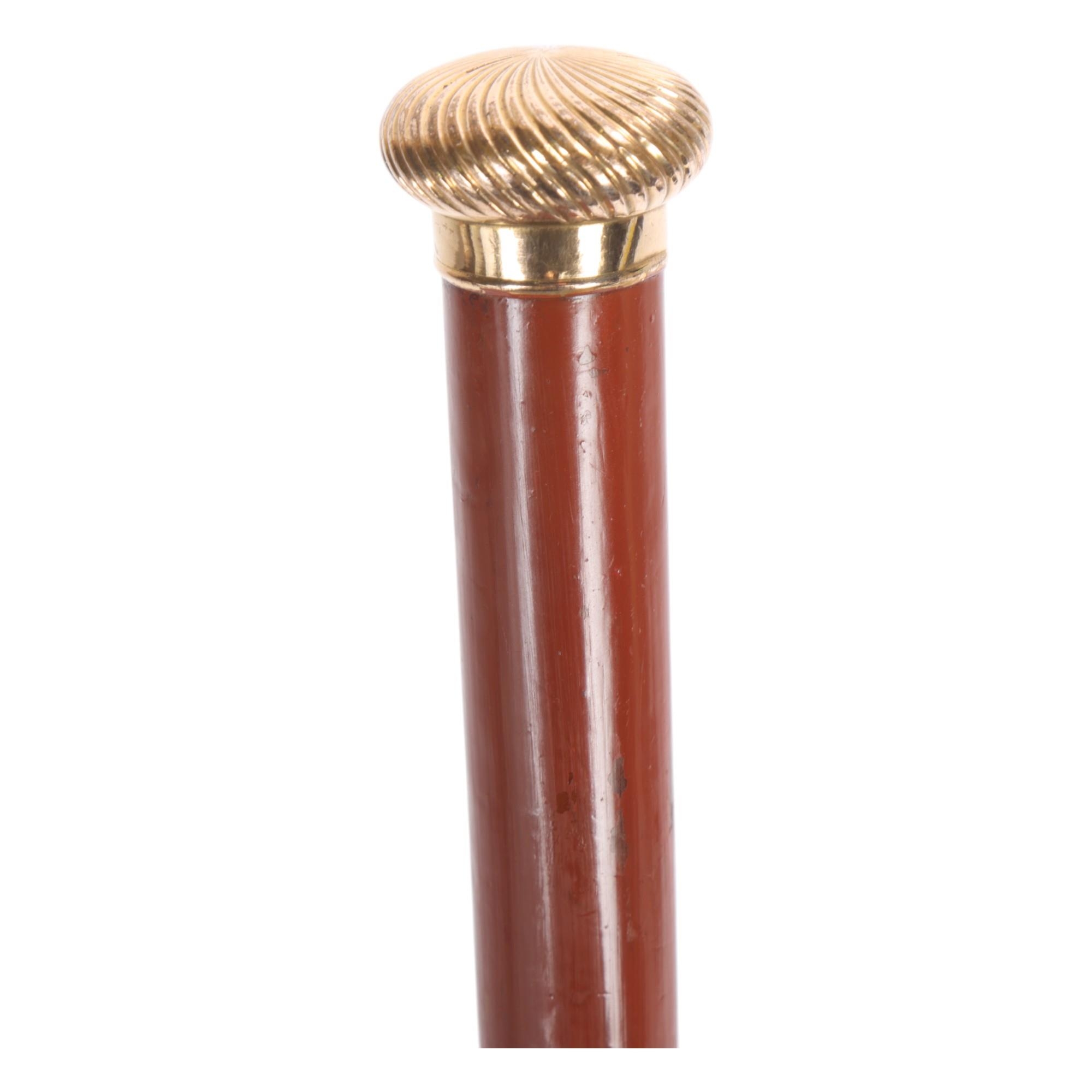 An Antique gilt metal handled with spiral design walking cane, Malacca shaft painted a deep shade of brown, steel-tipped brass ferrule, Continental 19th century, length 91cm