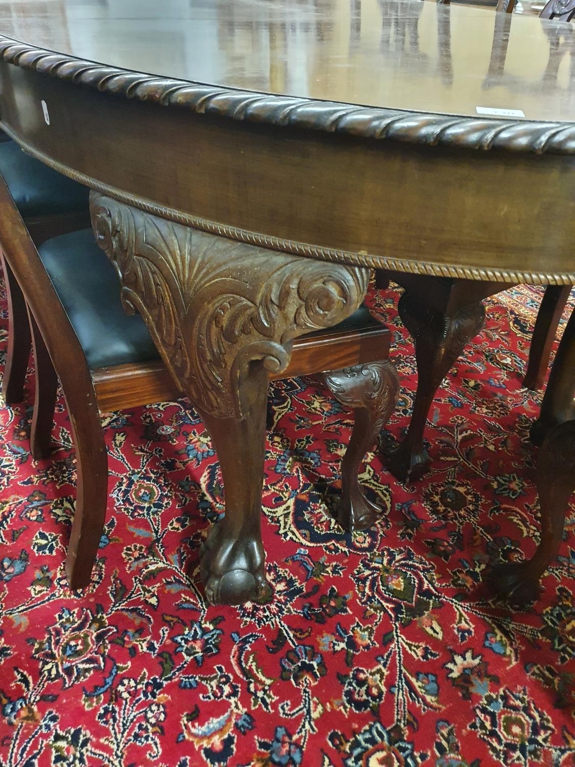A good Early 20th Century Mahogany two leaf Dining Table with rope edge decoration and carved ball and claw supports.