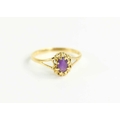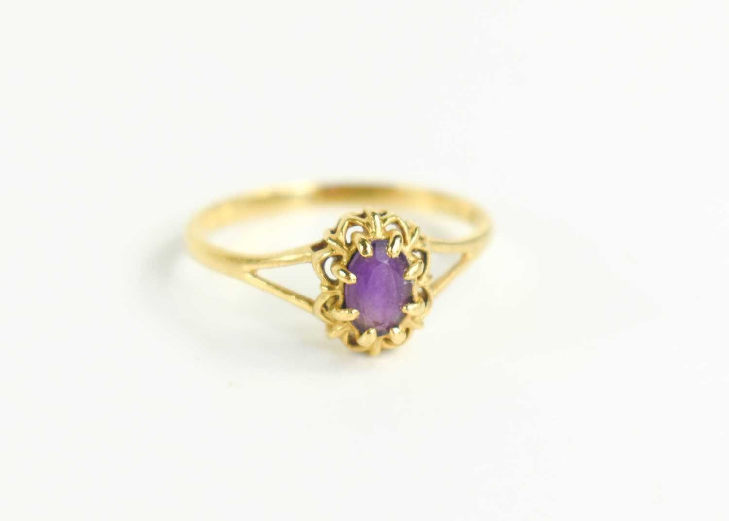 An 18ct gold and amethyst ring, size O, 1.8g.