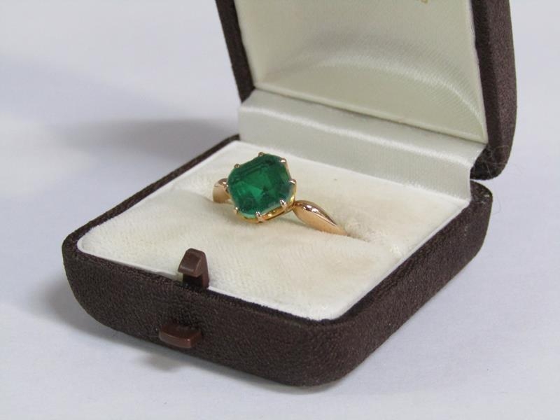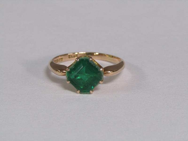 A 15ct gold cut emerald set ring, size R, emerald approx. 2 carats.